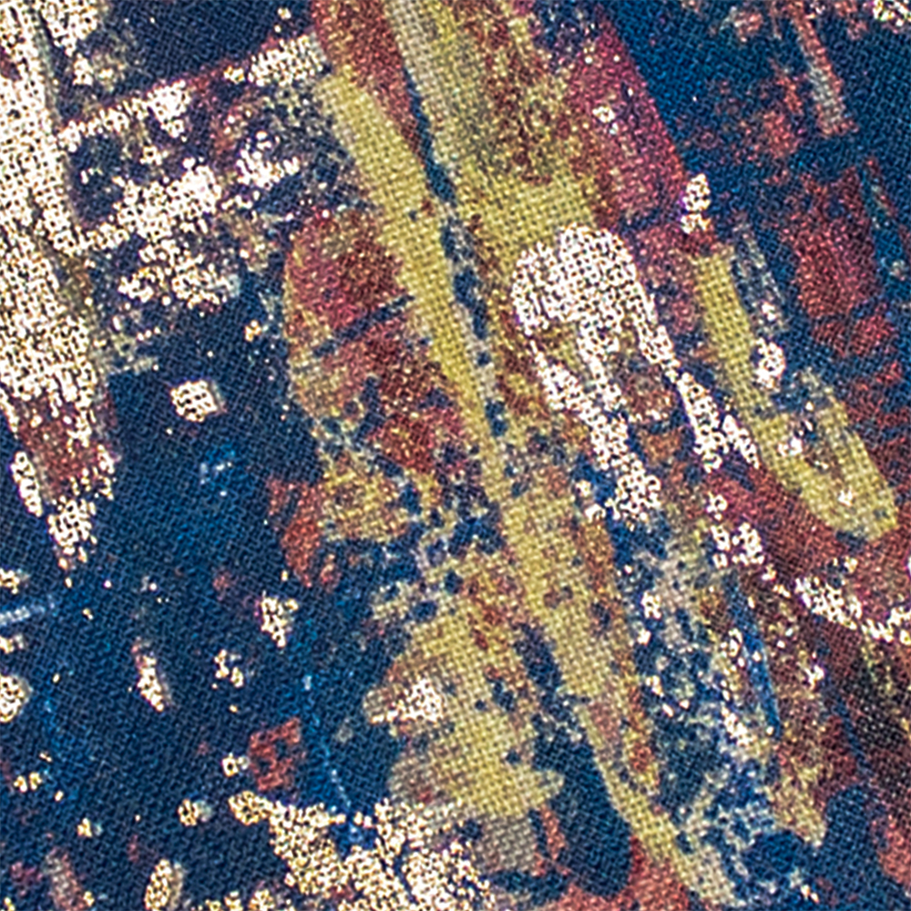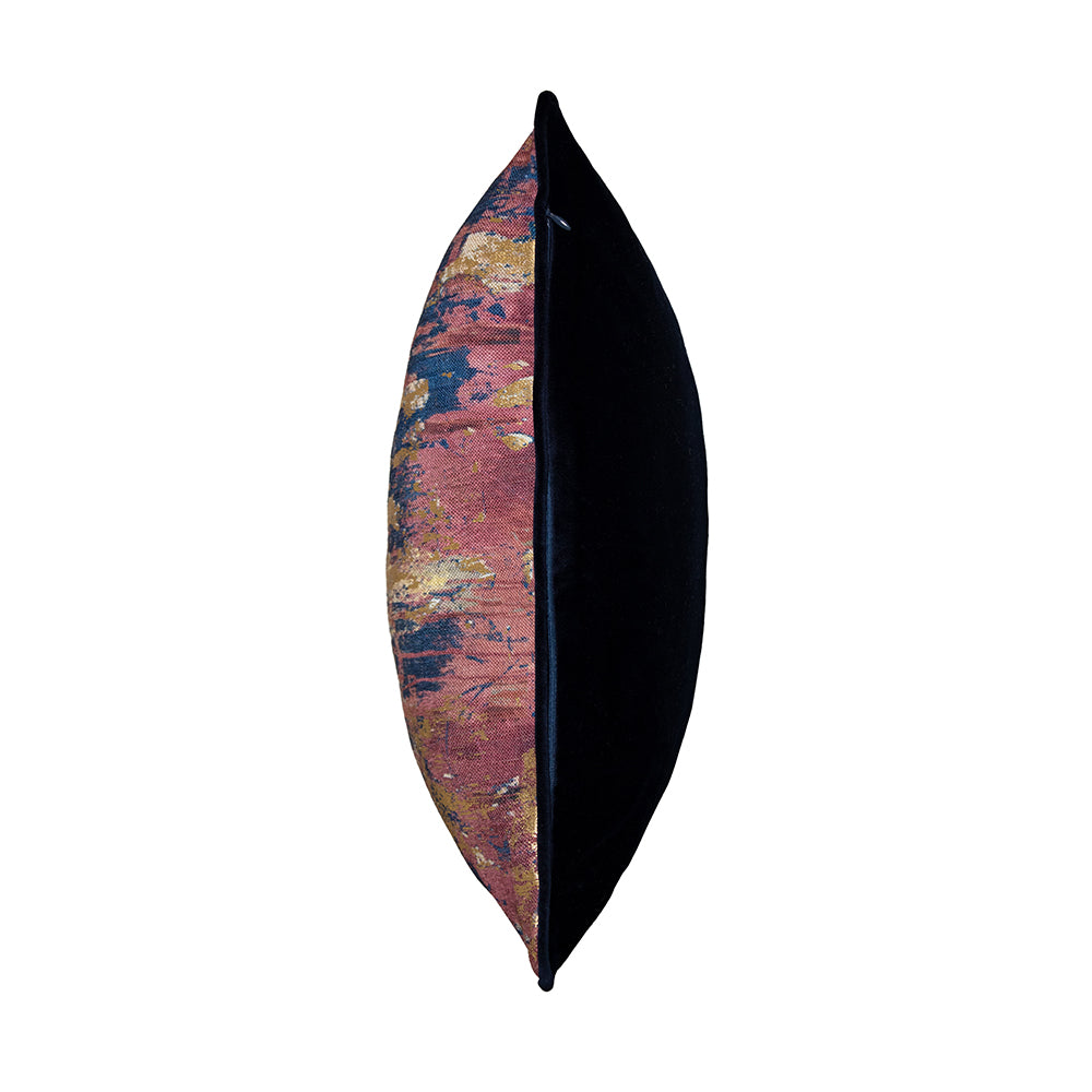 Miêu tả: Một thiết kế hình học hiện đại từ Scatter Box được in kỹ thuật số trên vải lanh với mặt trái phối hợp bằng nhung. Kết hợp với nhiều vật phẩm hơn từ