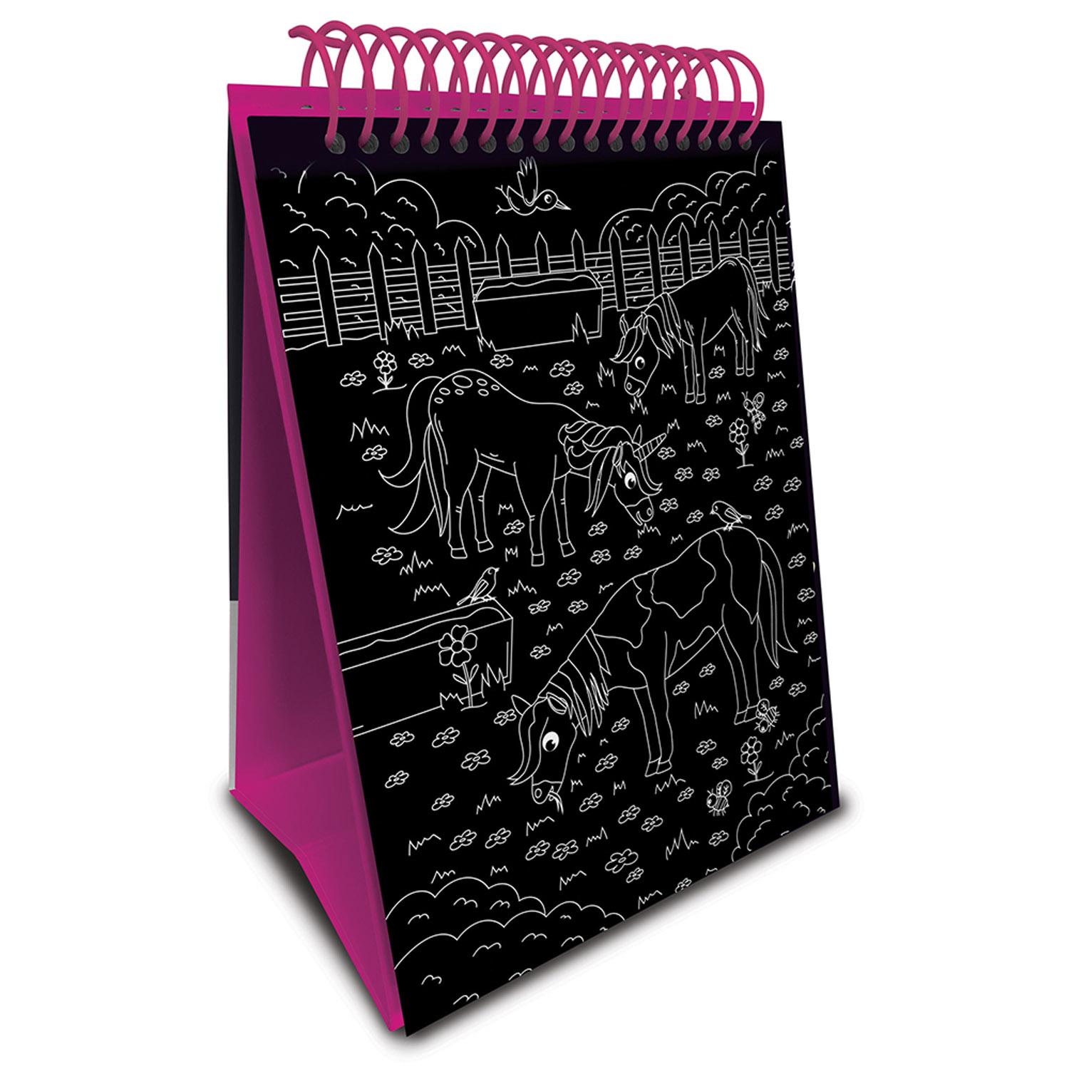 Scratch, colour and create magical unicorn pictures with this art easel activity book that is packed with scratch card pictures to create and colouring-in pictures to complete!