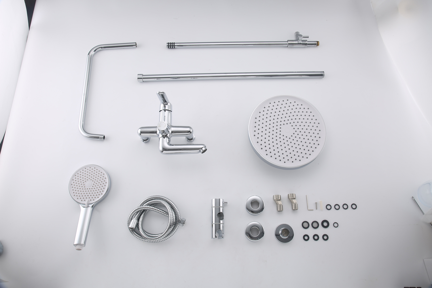 Combo gồm: 01 thân vòi sen lạnh, 01 chụp chân sen, 01 thân vòi lavabo, 01 dây cấp nước, 01 tay sen, 01 dây sen, 01 gác tay sen + ốc vít và tắc kê