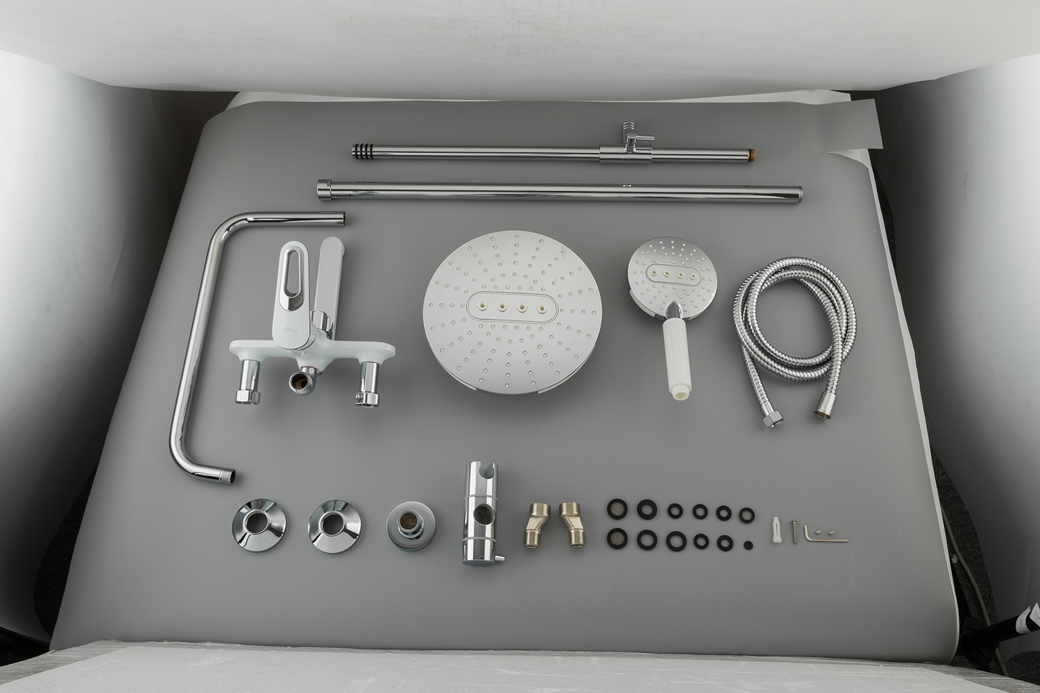 Combo gồm: 01 thân vòi sen lạnh, 01 chụp chân sen, 01 thân vòi lavabo, 01 dây cấp nước, 01 tay sen, 01 dây sen, 01 gác tay sen + ốc vít và tắc kê