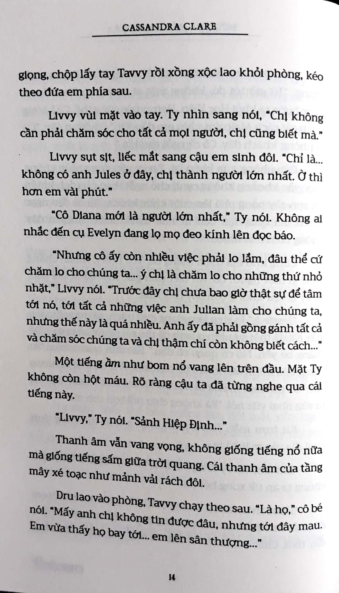 Bản dịch tiếng Việt do Chibooks thực hiện và xuất bản theo thỏa thuận liên kết xuất bản với tác giả Cassandra Clare thông qua Baror International, Inc.,