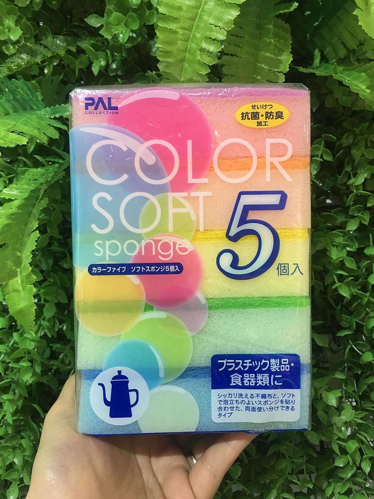 Set 05 miếng mút rửa chén bát, gồm 2 lớp kép giúp đánh bay mọi loại vết bẩn cứng đầu - nội địa Nhật Bản * Chất liệu: Mút, sợi tổng hợp với một mặt