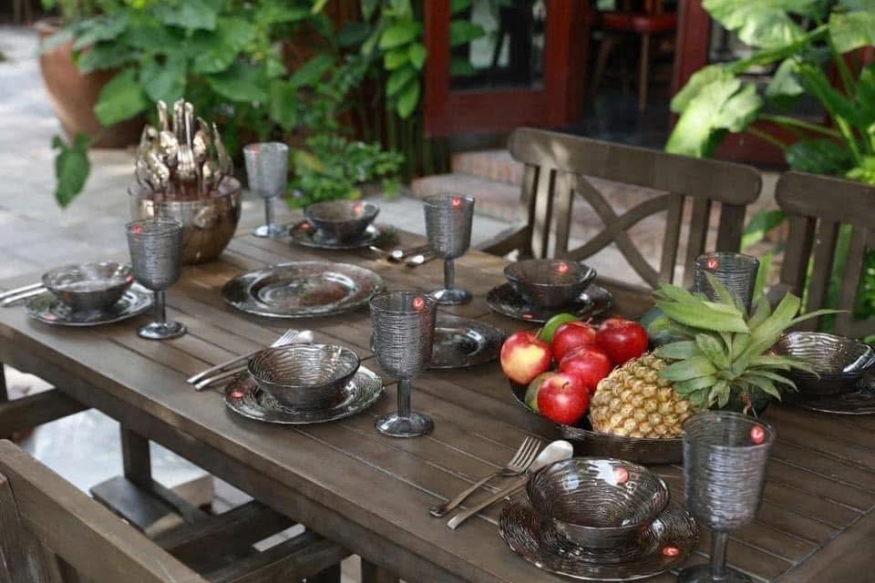 Sự hòa quyện giữa đỏ rực rỡ và xám huyền bí, mang đến cảm giác sang trọng, phù hợp với các dịp lễ, tiệc tùng hay bữa ăn gia đình ấm cúng.