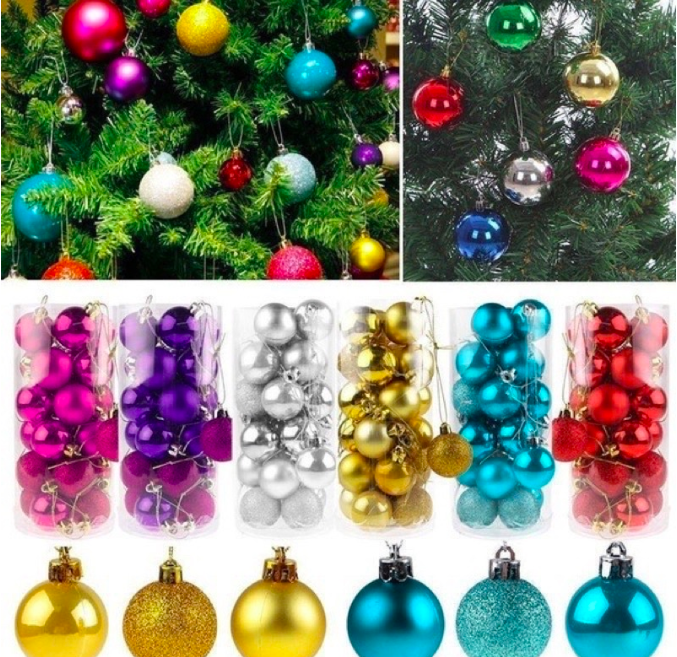 SET 24 QUẢ CHÂU TRANG TRÍ CÂY THÔNG NOEL: - Set đỏ: gồm 18 quả với 3 kích thước 2cm, 6cm, 8cm. - Set bạc: gồm 24 quả với 4 kích thước 2cm, 4cm, 6cm,