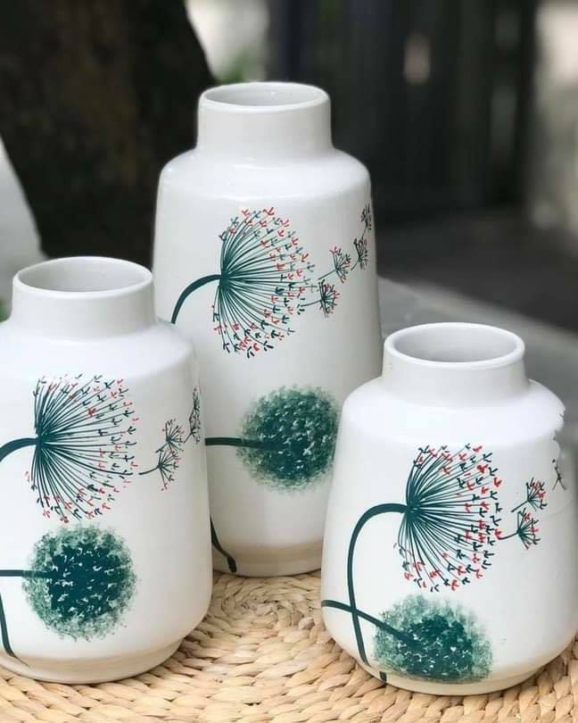 Món quà TUYỆT VỜI làm siêu lòng chị em phụ nữ, mẫu BỘ 3 BÌNH HOA DECOR ĐỘC ĐÁO với nhiều kiểu dáng hoạ tiết đa dạng nhiều màu sắc đẹp, thích hợp để trang trí, cắm hoa và cũng là một món quà ý nghĩa dành tặng các chị em thỏa sức lựa chọn để làm đẹp thêm căn nhà của mình. ~~ Xuất xứ các Bé đều là GỐM THỦ CÔNG BÁT TRÀNG. Họa tiết thì có mẫu là VẼ THỦ CÔNG BẰNG TAY. Các bé đi theo bộ có họa tiết từ hiện đại đến hoài cổ, thoải mái cho các Bác lựa chọn để phù hợp với không gian nhà mình các Bác nhé. Kích thước: cao 23 rộng 9cm, cao 17cm rộng 9cm, cao 14cm rộng 9cm Kích thước đã được thiết kế để trưng bày, phù hợp với mọi không gian bày trí.