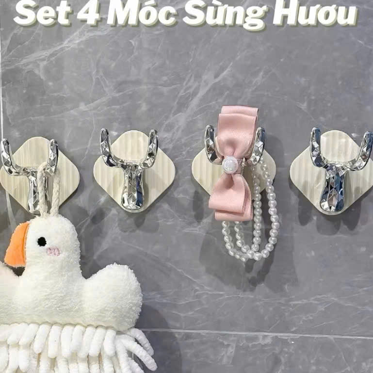 Set 4 Miếng Móc Treo Sừng Hươu Cao Cấp, Chịu Lực 10kg, Móc Hút Chân Không Tiện Lợi Set 4 Miếng Móc Treo Sừng Hươu Cao Cấp, Chịu Lực 10kg, Móc Hút Chân Không Tiện