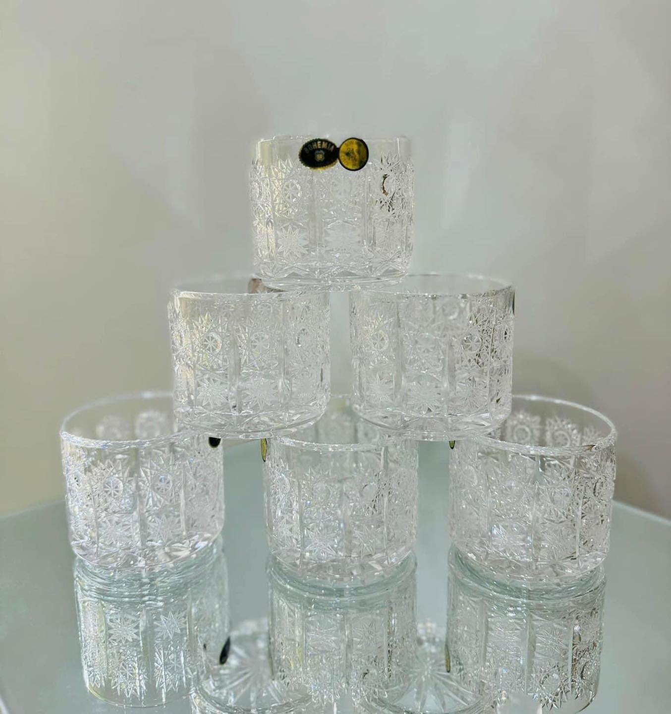 ✨Set 6 cốc pha lê mài Bohemia hoa văn M57 - SX tại Séc. Hàng chính hãng