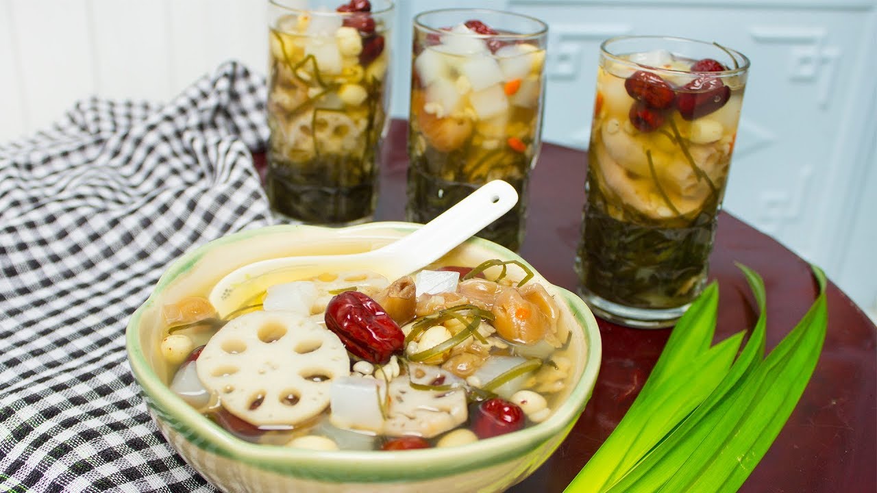 THÔNG TIN SẢN PHẨM Tên sản phẩm: Set Chè Sâm Bổ Lượng (Set lớn 30 Chén) VietTin Mart Thành phần: Rong sụn Phổ tai Nho khô Táo đỏ, táo lát Nhãn nhục Nấm tuyết Hạt