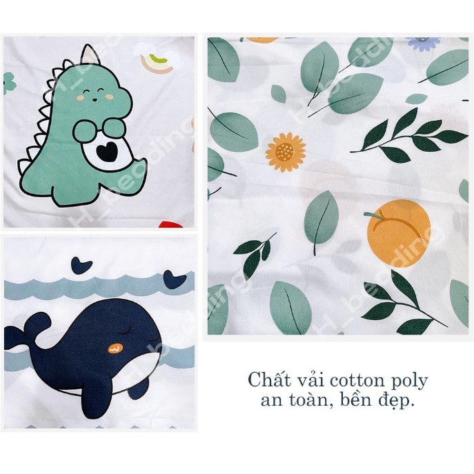 Bộ vỏ chăn ga gối cotton poly Chất liệu: Cotton pha poly, chất vải mềm, mịn, không phai màu không xù lông Set gồm: 1 vỏ chăn khổ 2m2m2, có khóa kéo để lồng được