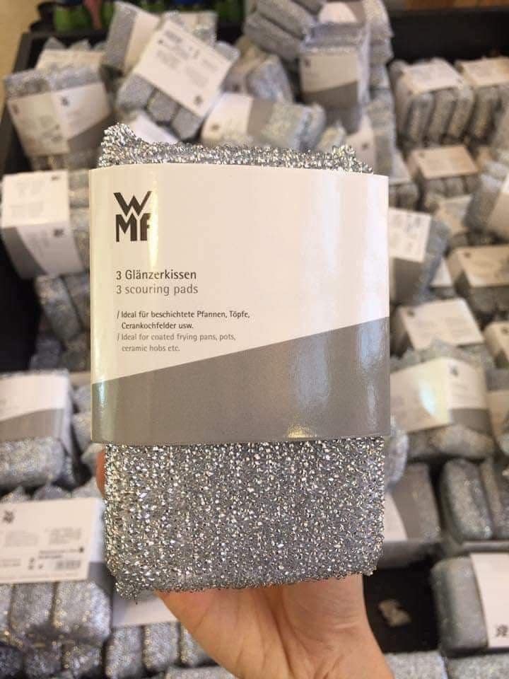Giẻ rửa bát WMF được thiết kế đặc biệt dùng cho các loại chảo chống dính. Nên bạn có thể hoàn toàn yên tâm không ngại ngần kì cọ trên lớp chống dính của chảo. Đồ ăn rán bị cháy trên mặt chảo chống dính mà dùng bằng rẻ mút thường thì không cọ được đâu ah hoặc cọ rất lâu thế nên ai dùng chảo chống dính em khuyến cáo nên xài thêm giẻ này nhé.