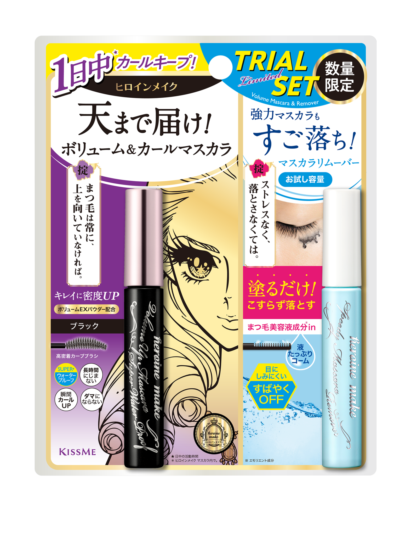 ✨Set Mascara Nâng Rậm Dày Mi Và Mascara Tẩy Trang Mi Kissme Heroine Make (Set 2 cây)