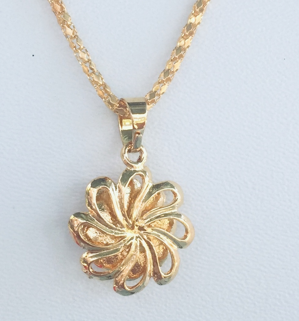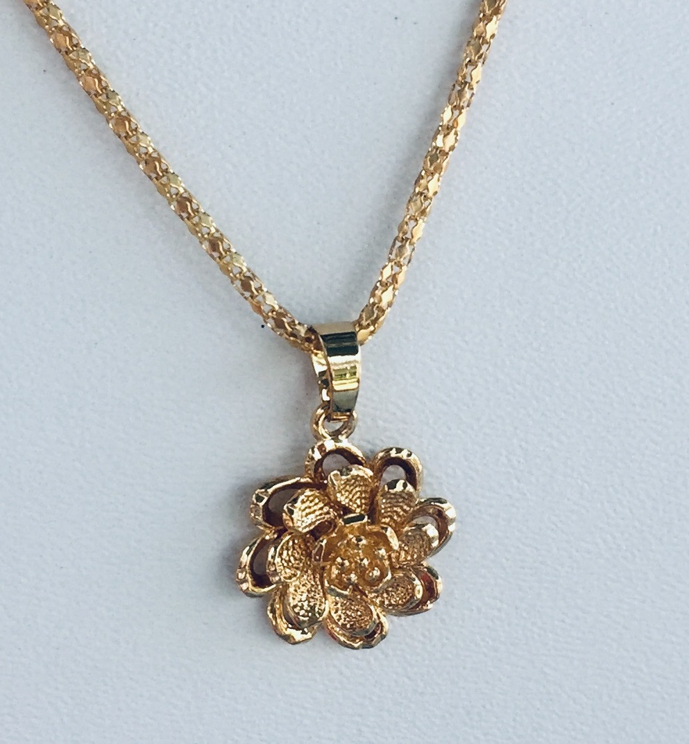 ✨Set Mặt Dây Chuyền Mạ Vàng 18K Đúc Hình Hoa Mai 4 Tầng, Kèm dây chuyền Mạ vàng 18K và hộp đựng trang sức.