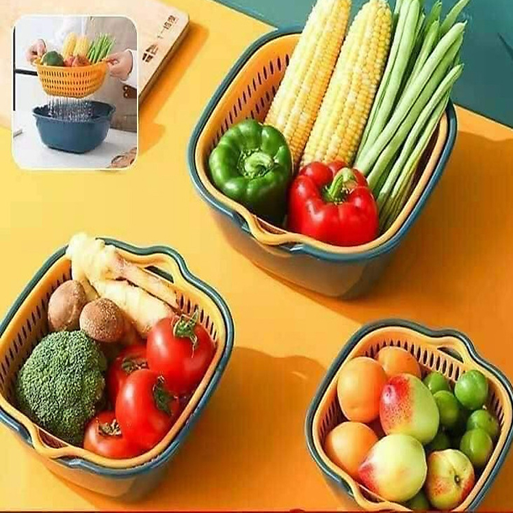 SET 6 MÓN RỔ ráo nước/Rổ Rửa Rau Củ Quả Hai Lớp Ráo Nước Tiện Dụng Cho Nhà Bếp Chất liệu nhựa PP cứng và bền bỉ, an toàn và không độc hại. Thiết kế
