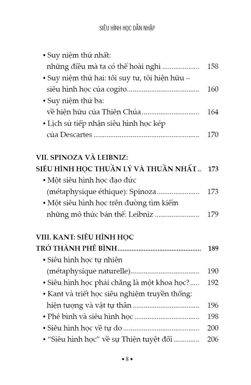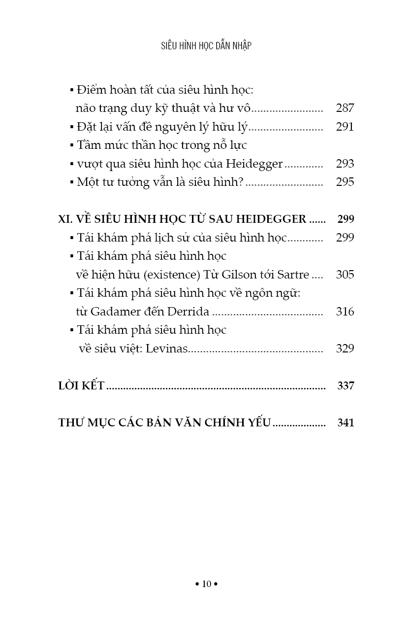 “Dẫn Nhập Siêu Hình Học” không nhằm giới thiệu hay điểm lại các “hệ thống” siêu hình học trong tất cả sự đa phức của nó, mà là cố gắng lắng nghe, tìm lại tính liên tục của một lối tra vấn hay một hướng suy tư đã cấu thành nên tư tưởng triết học theo nghĩa đích thực và sâu xa nhất của nó. Thật vậy, tuy đặt dưới những danh xưng có vẻ xa vời, thậm chí lạ lẫm với đôi tai con người hiện đại như “Siêu Hình Học” (Métaphysique), “Hữu thể luận” (Ontologie) hay “Triết Học Đệ Nhất” (Philosophie Première), nhưng nói cho cùng, tất cả đều phát xuất từ khắc khoải căn bản, nằm sâu nơi mỗi con người: khắc khoải về cội nguồn, về thân phận trong thời gian, về tương lai tối hậu của nhân loại cũng như của cả vũ trụ. Vì thế, “Dẫn Nhập Siêu Hình Học” cũng là lời kêu gọi mỗi người đặt mình trước câu hỏi không phải về điều gì khác mà là về chính mình, theo kiểu nói của Thánh Augustinô: “…Tôi trở thành câu hỏi cho chính tôi…” (quaestio mihi factus sum).