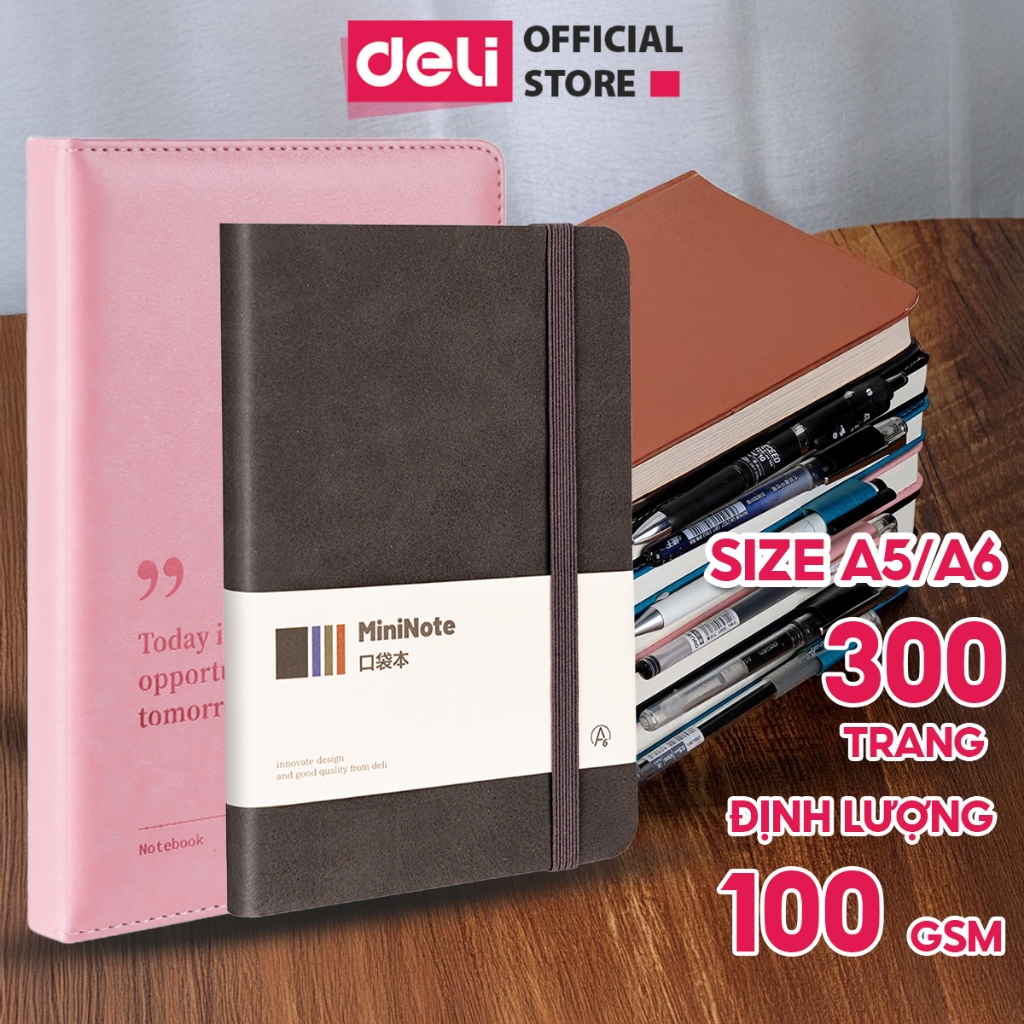✨Sổ Da A5/A6/A7 Sổ Tay Bìa Da Kẻ Ngang Deli - 300 Trang Giấy Dày Chất Lượng Chống Nước Quà Tặng Sang Trọng