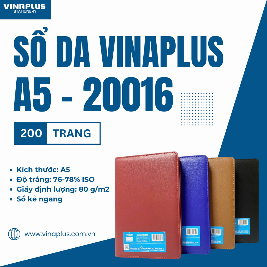 ✨Sổ Da A5 Sổ Tay Bìa Da Kẻ Ngang Vinaplus 16016 - 200 Trang Giấy Dày Chất Lượng