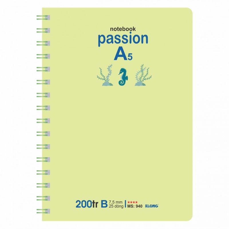 Sổ kẻ ngang lò xo kép Passion KLONG A5 200 trang 70/76; MS: 940