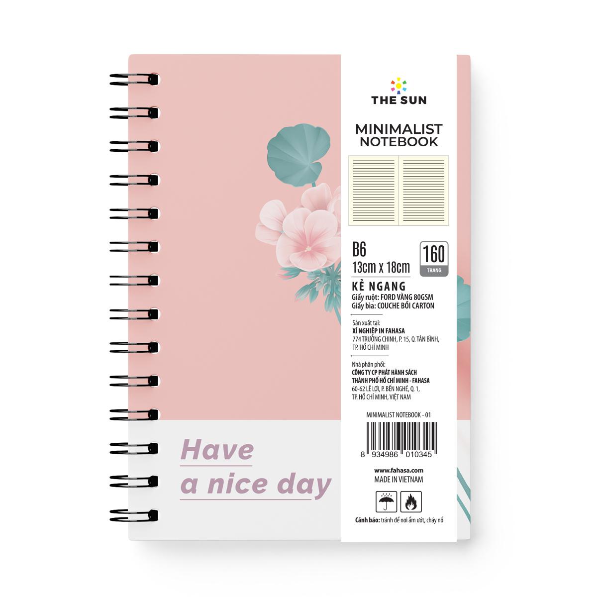 Mua tại TiktokSổ Lò Xo Bìa Cứng Minimalist B6 - Kẻ Ngang - 160 Trang 80gsm - The Sun 01