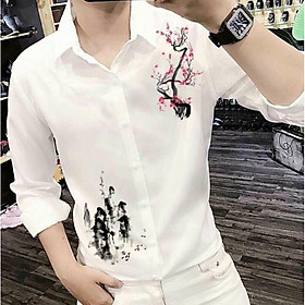 Thiết kế Áo sơ mi nam tay dài viền vai họa tiết cây hoa anh đào cao cấp phong cách đường may tỉ mỉ. Áo thiết kế form vừa vặn giúp tôn được đường nét