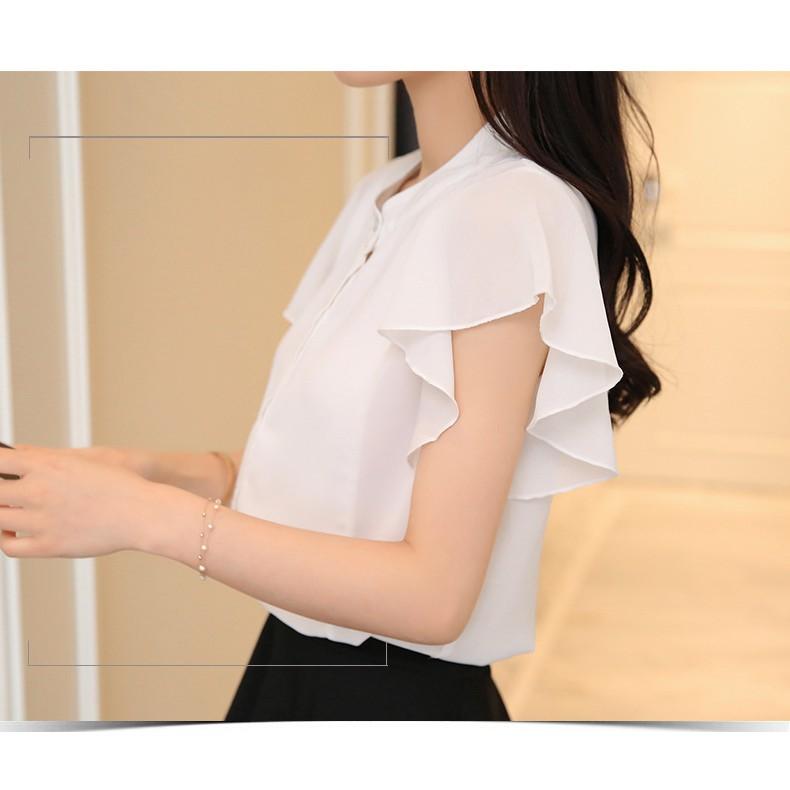 Áo sơ mi cổ sen tay ngắn xinh xắn Mô tả Size S: sản phẩm vòng eo rộng 64cm - 66cm, vòng ngực rộng 84cm-86cm, vòng mông rộng 86cm-88cm Size M: sản phẩm vòng eo