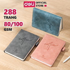 ✨Sổ Tay Ghi Chép A5 Bìa Da Kẻ Ngang Deli - 288 Trang Sổ Tay Bìa Da Chống Nước 80/100gsm Làm Quà Tặng Sang Trọng