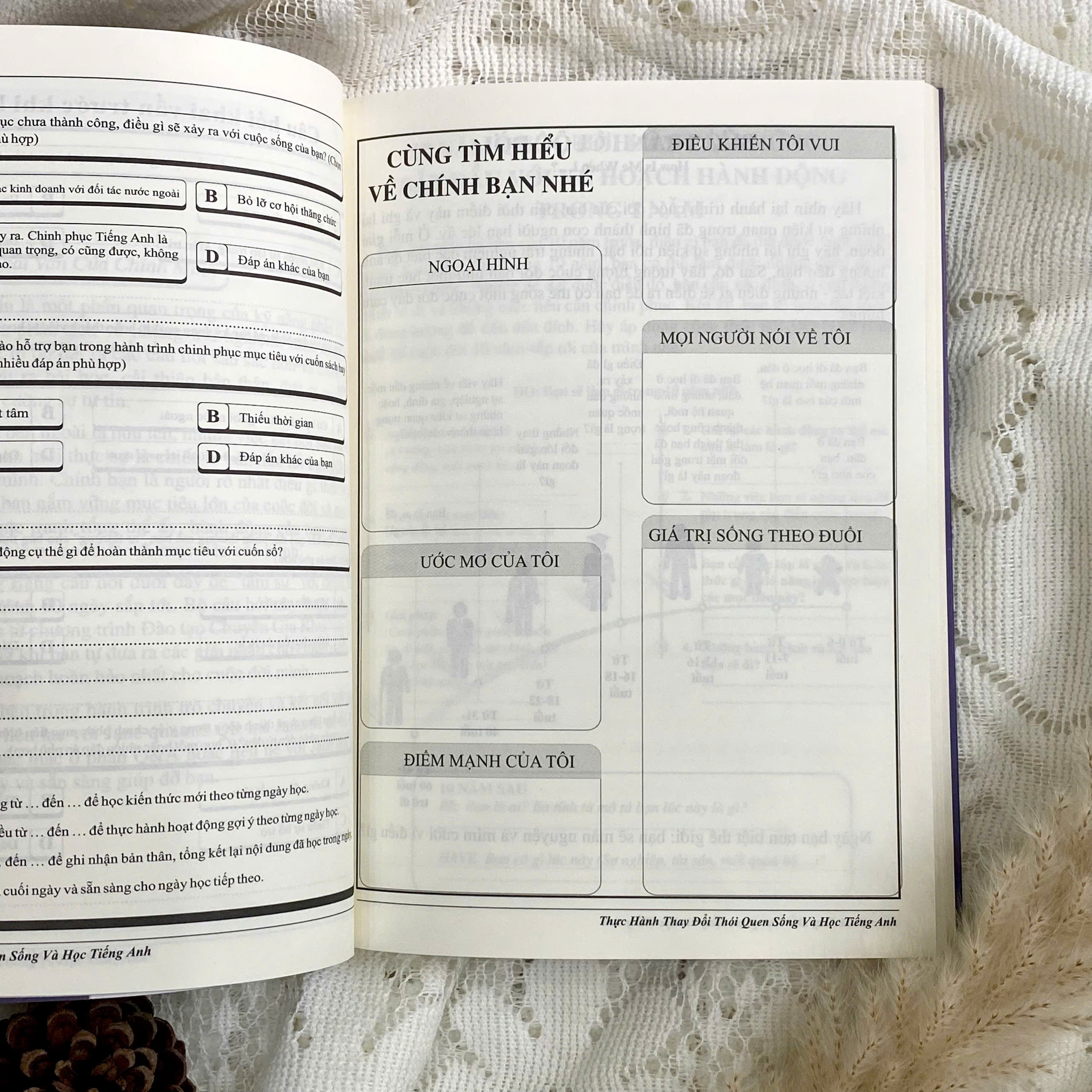 • Tích hợp coaching và phản tư cá nhân: Cuốn sổ không hướng dẫn bạn học một cách máy móc, mà khuyến khích bạn “trò chuyện với chính mình” qua các câu hỏi khai vấn, nhật ký học tập, thư gửi bản thân tương lai...