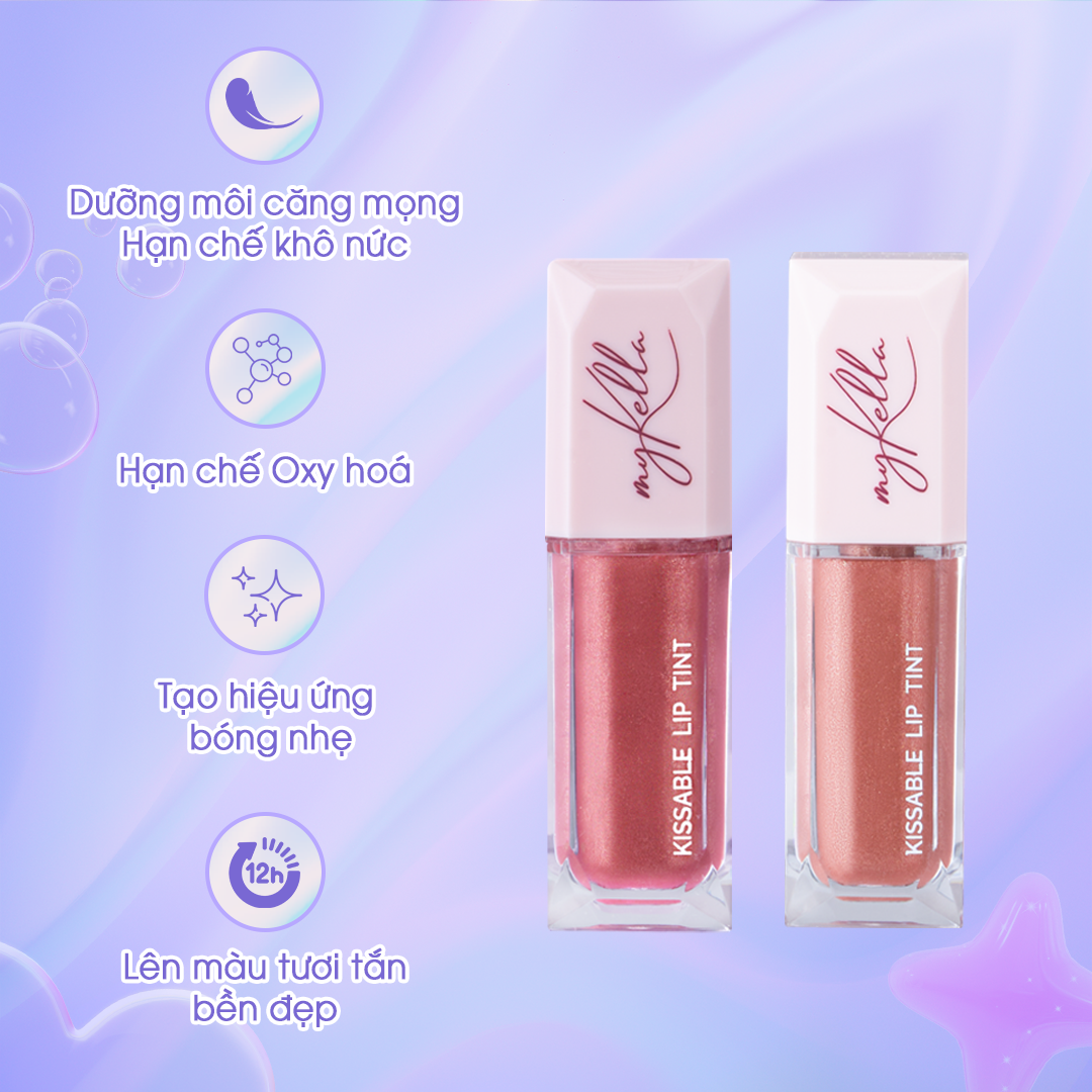 THÔNG TIN SẢN PHẨM Son Tint Bóng myKella– Xu hướng làm đẹp hiện đại giúp đôi môi căng mọng, mềm mịn và tràn đầy sức sống. Sản phẩm mang lại hiệu ứng bóng nhẹ tự