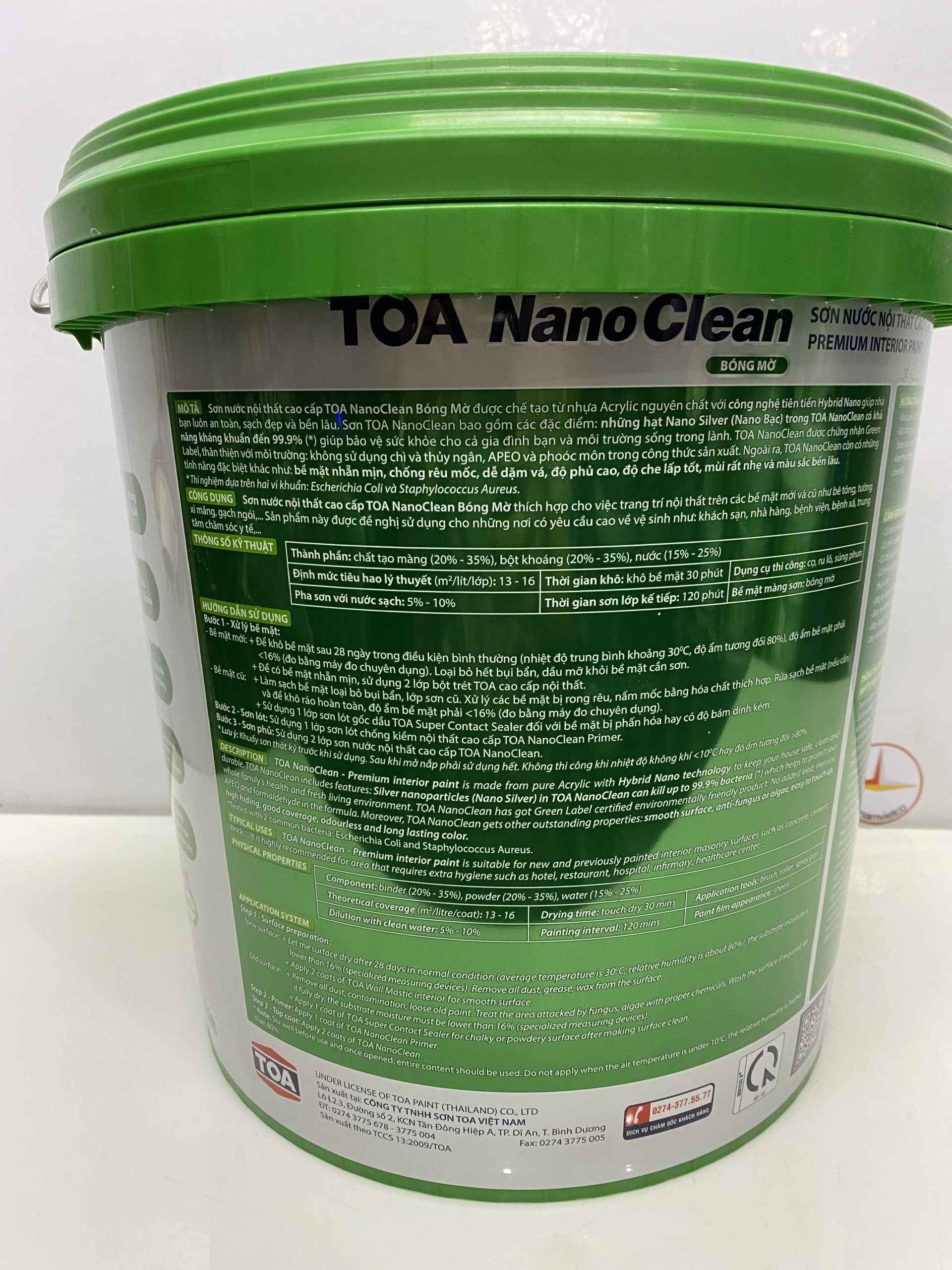 Sơn nước nội thất cao cấp Toa Nanoclean màu xám 8268_ 15L (HÀNG PHA MÀU, VUI LÒNG KHÔNG ĐỔI HOẶC TRẢ HÀNG) - Được chế tạo từ nhựa acrylic nguyên chất với công nghệ tiên