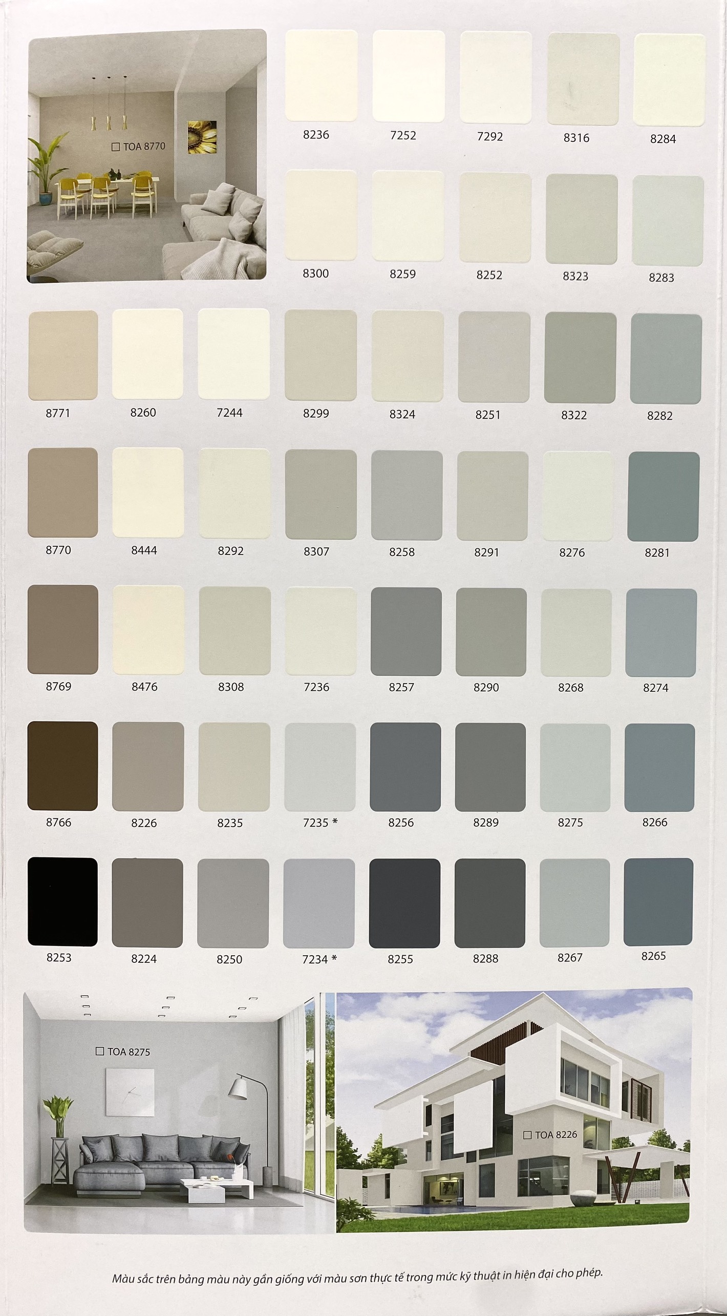 Sơn Nước Toa Supertech nội thất màu xám nhạt 8268 _5L Sơn Nước nội thất Toa Supertech là được làm từ nhựa nhũ tương chất lượng cao. Đây là lọai sơn trung cấp với màu