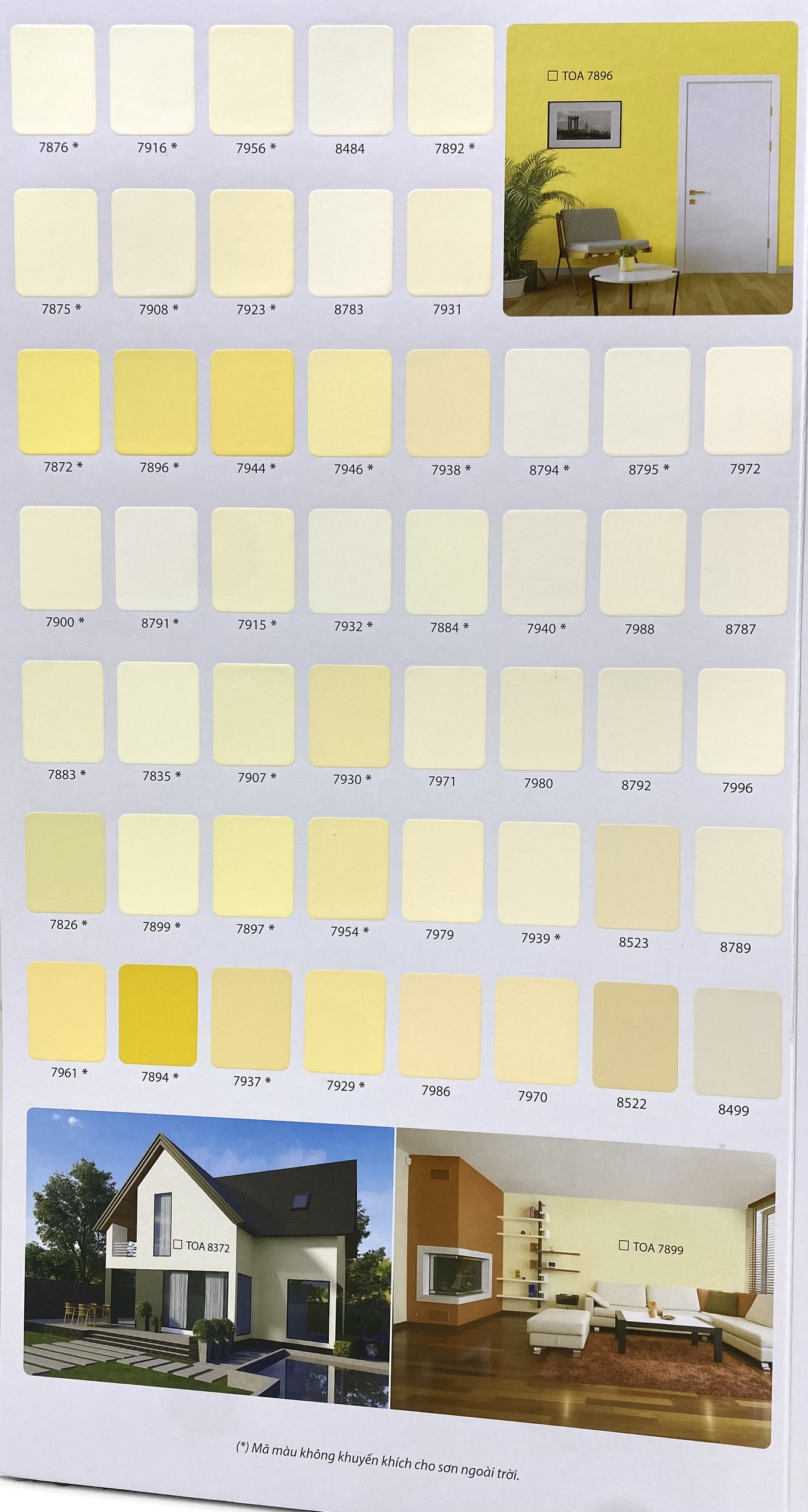 - Màu sắc: Nhiều màu Theo bảng màu và quạt màu TOA