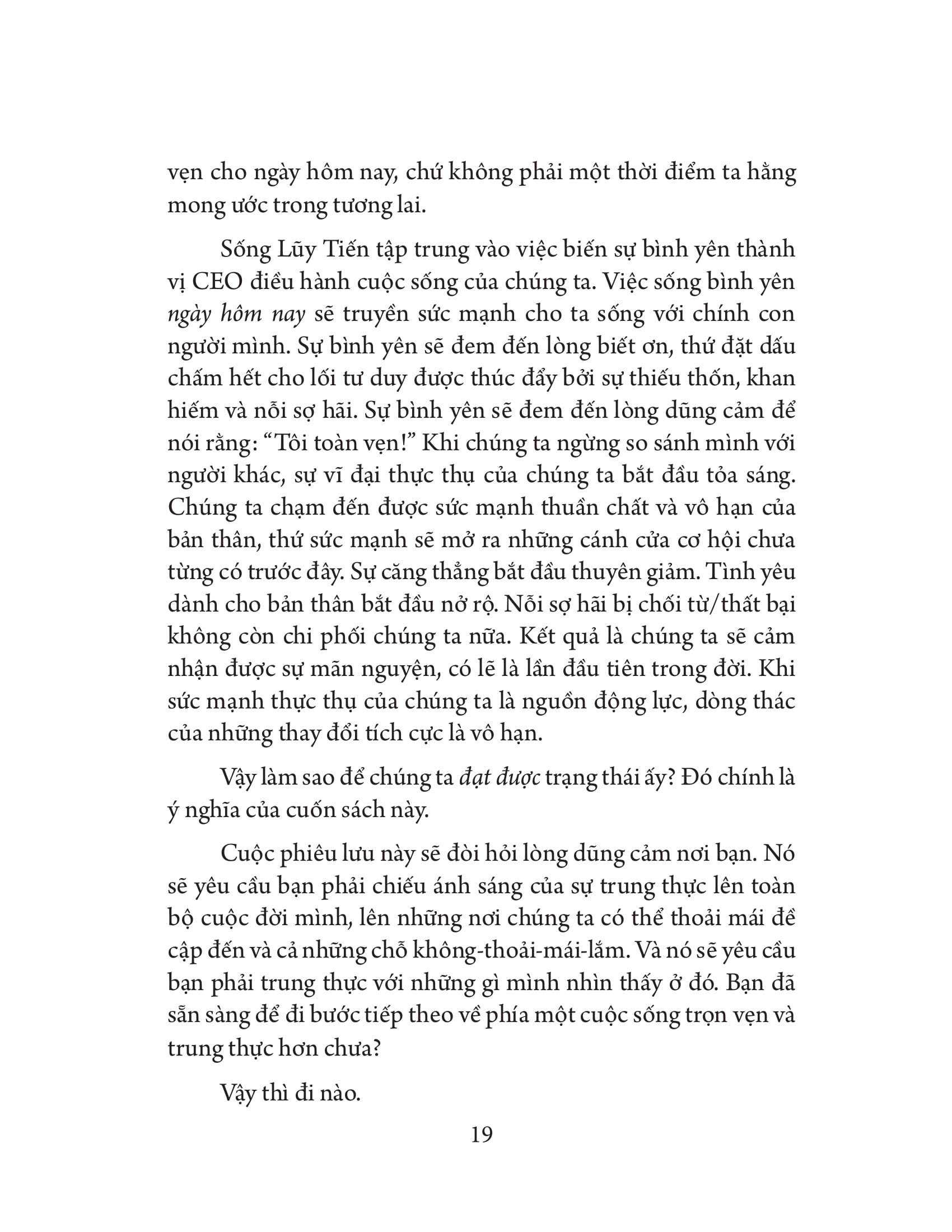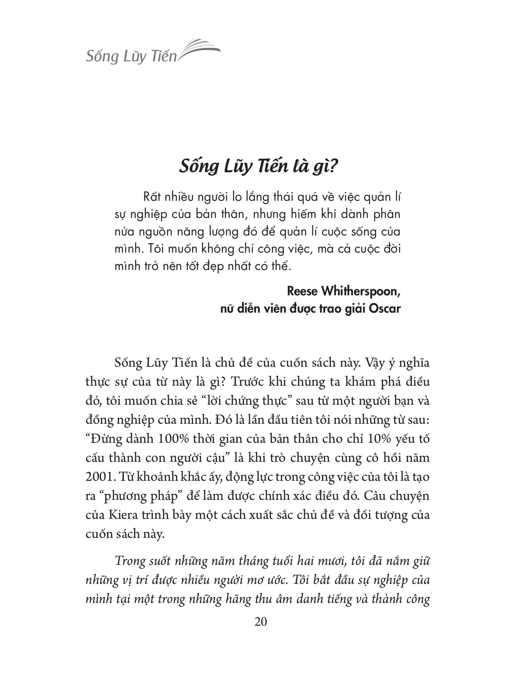 Cuốn sách này không bàn về những lí thuyết hoặc nghiên cứu học thuật; mà nó phản ánh kinh nghiệm cá nhân của tôi và những người thành đạt đến từ những tầng lớp khác nhau trong xã hội. Thật khó để truyền cảm hứng cho người khác đạt được những điều mà chính bản thân bạn vẫn chưa làm được, vậy nên tôi muốn bạn biết rằng tôi đã sống theo tất cả những từ ngữ được in trên trang giấy này, để bạn cũng có thể trải nghiệm cuộc sống lũy tiến của mình. (Lời tác giả)