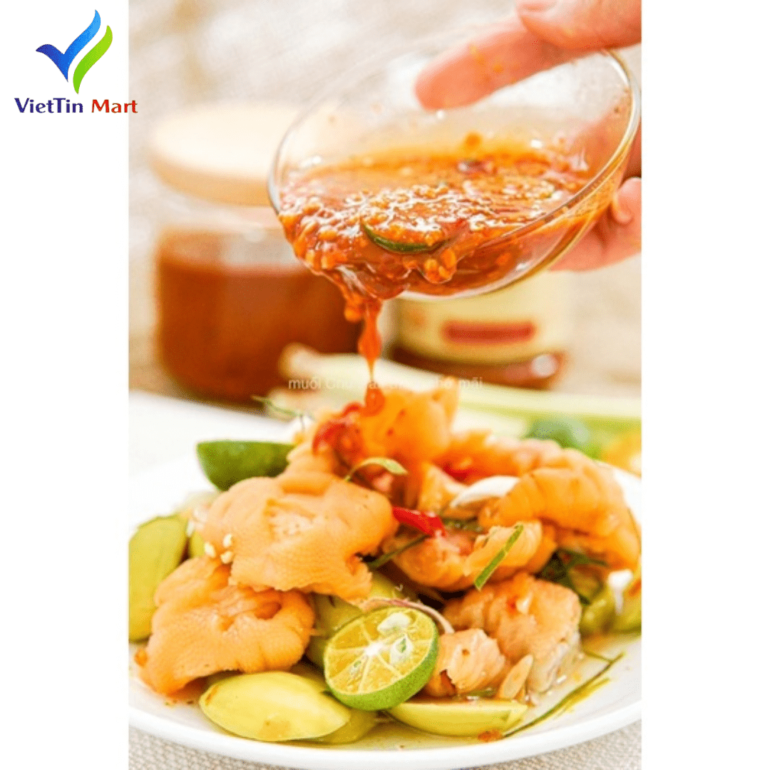 Công dụng: Dùng chấm hải sản tôm mực, cua ghẹ,…Chấm bánh tráng phơi sương, bánh tráng trắng, … Chấm trái cây có vị chua xoài, cóc, thơm,…