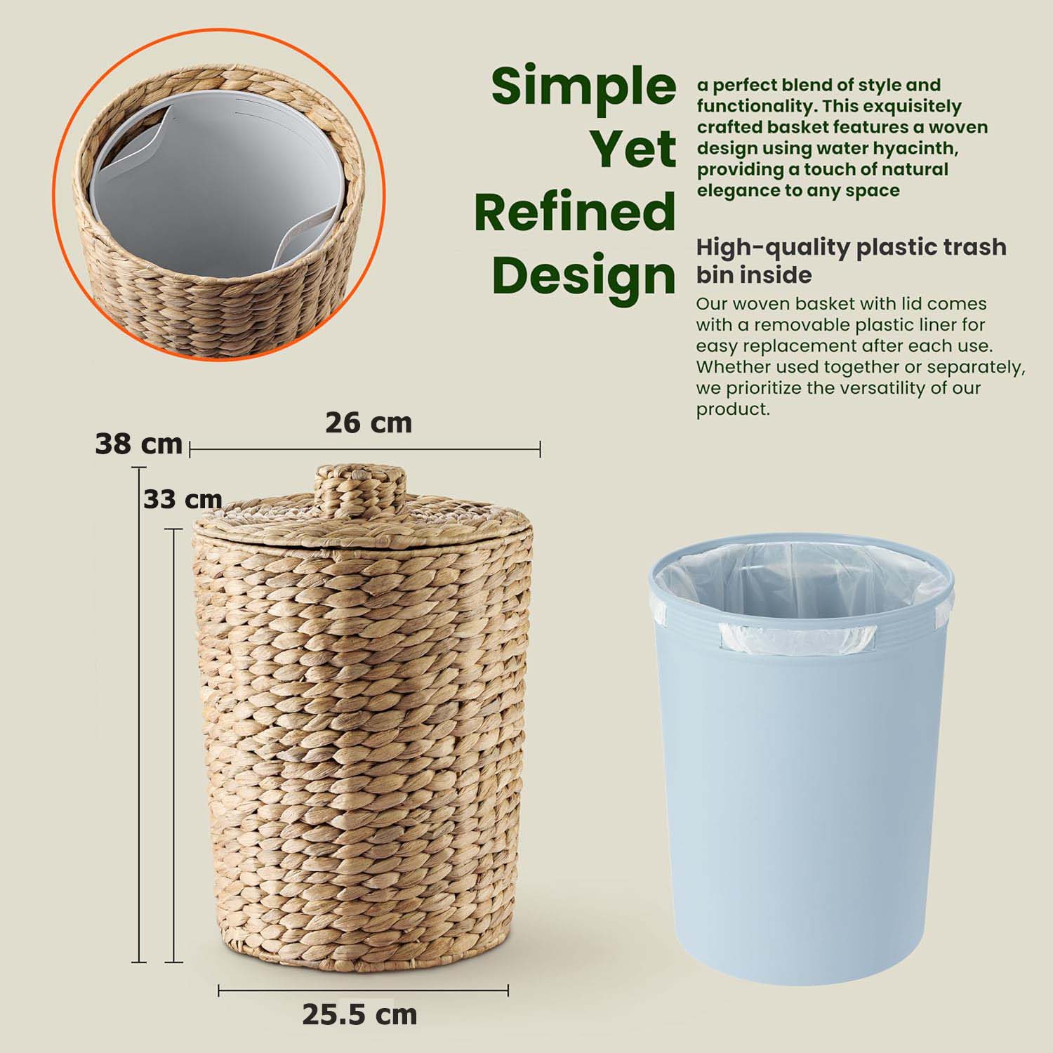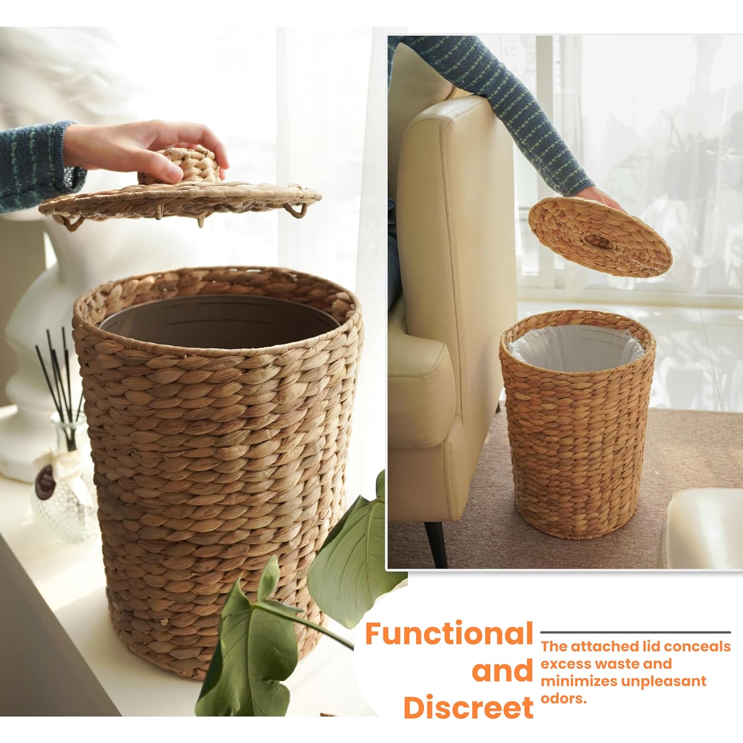 ✨Sọt rác lục bình có lót thùng nhựa ở trong, sọt để đồ đa năng, đồ để văn phòng tiện dụng