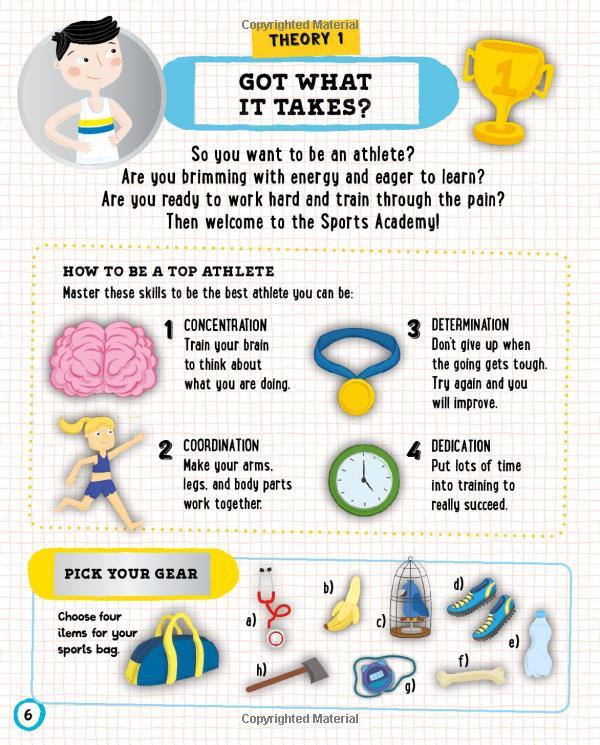 Simple tasks will test your skills and reinforce the information you read in the book. Do you know where your Achilles heel is? Can you check your pulse? How do you train and prepare for an important competition? Take a look inside to find out!
