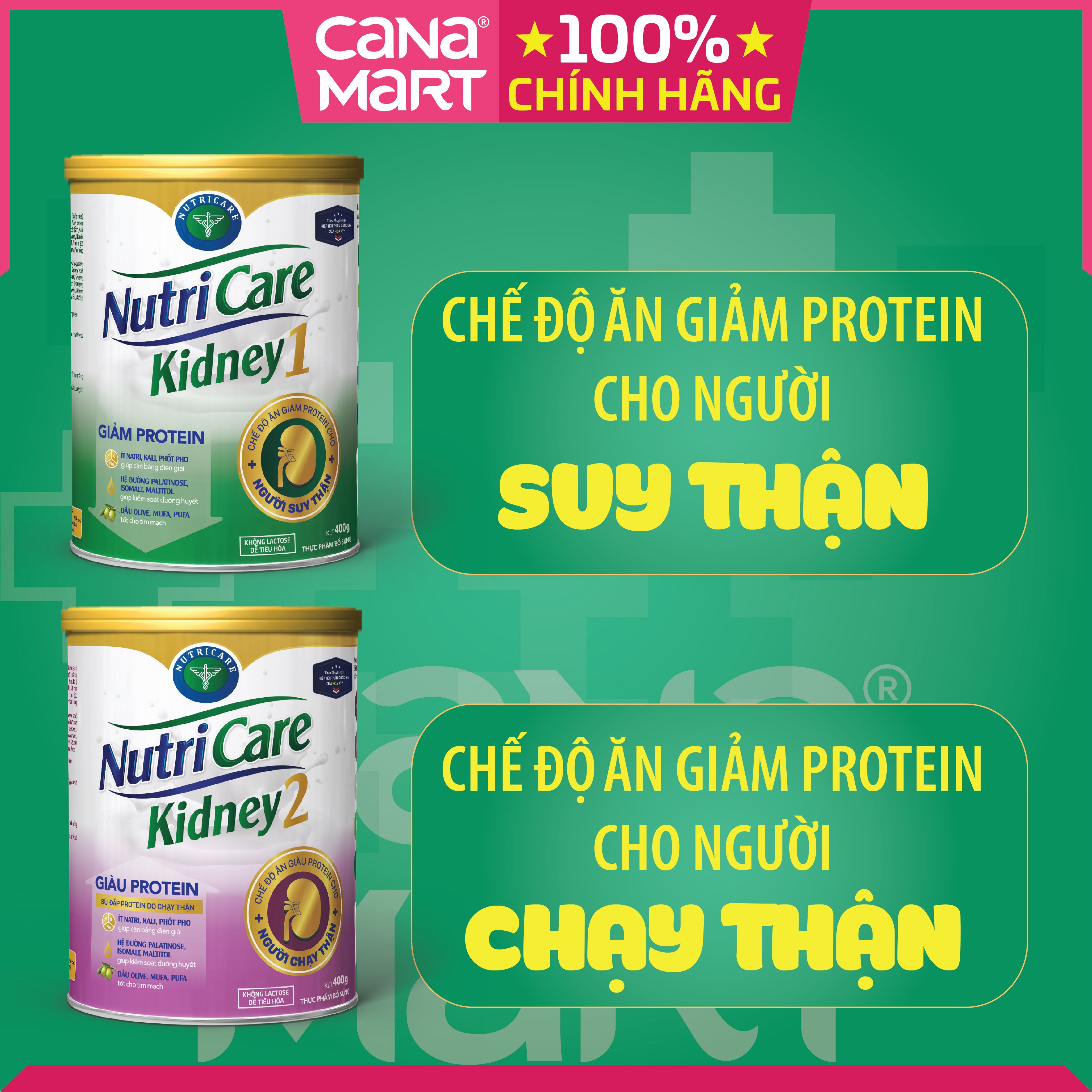 GIẢM PROTEIN & GIÚP CÂN BẰNG ĐIỆN GIẢIProtein thấpgiúp giảm Urê máu, giảm tải cho hoạt động của thận.Ít Natri - Kali - Phốtpho giúp cân bằng điện giải, giảm tải hoạt động cho thận, giảm tì...