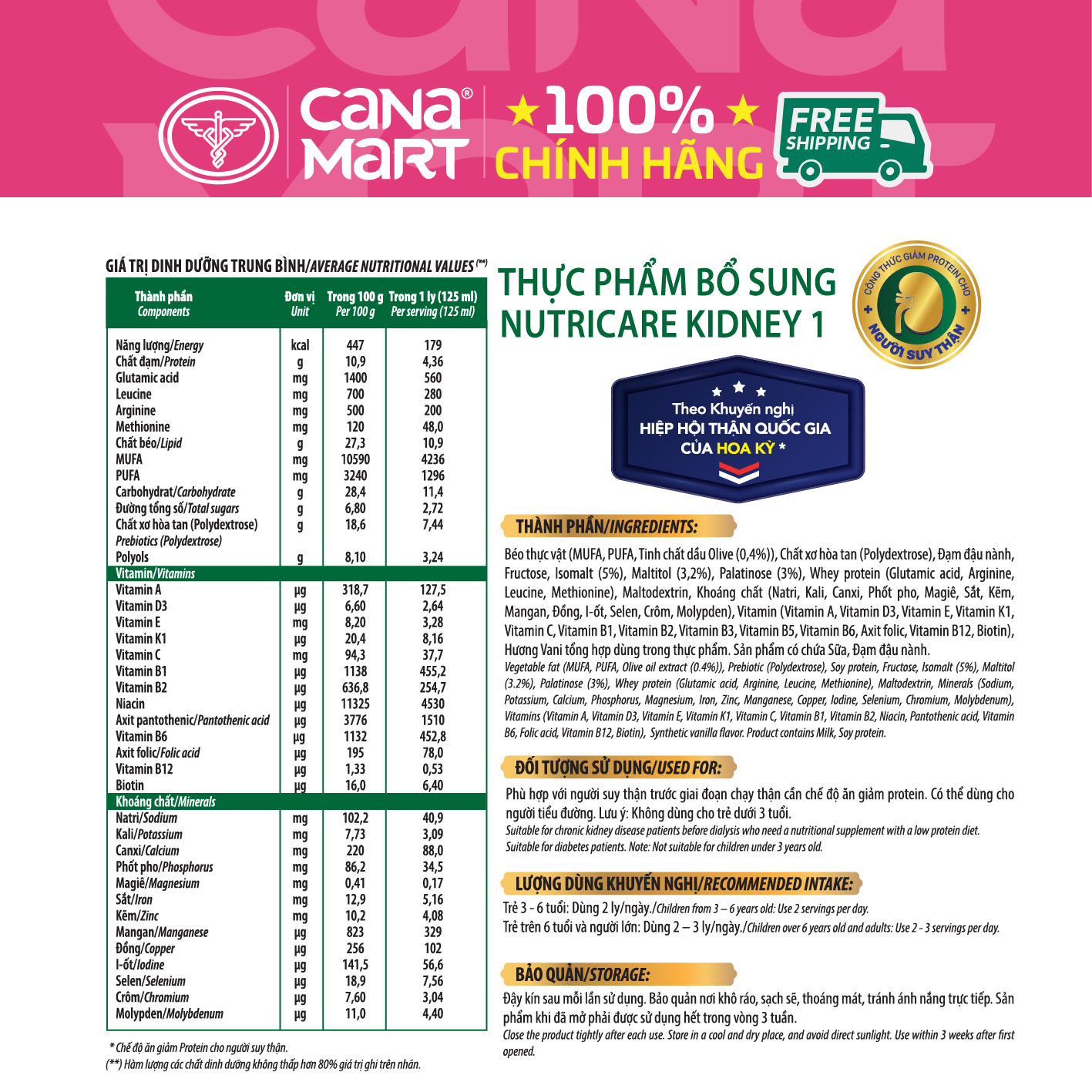 ✨Sữa bột cho người suy thận Nutricare Kidney 1 giảm protein & giúp cân bằng điện giải, kiểm soát đường huyết (900g)