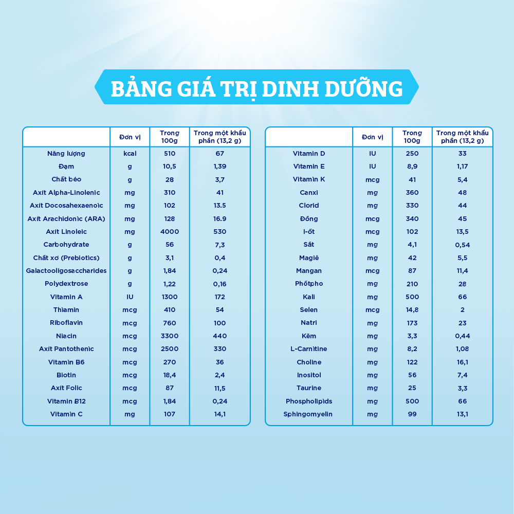 Dựa theo thông tin dưới đây để đong chính xác lượng nước và lượng bột sữa Enfamil A2 Neuropro 1 800g.