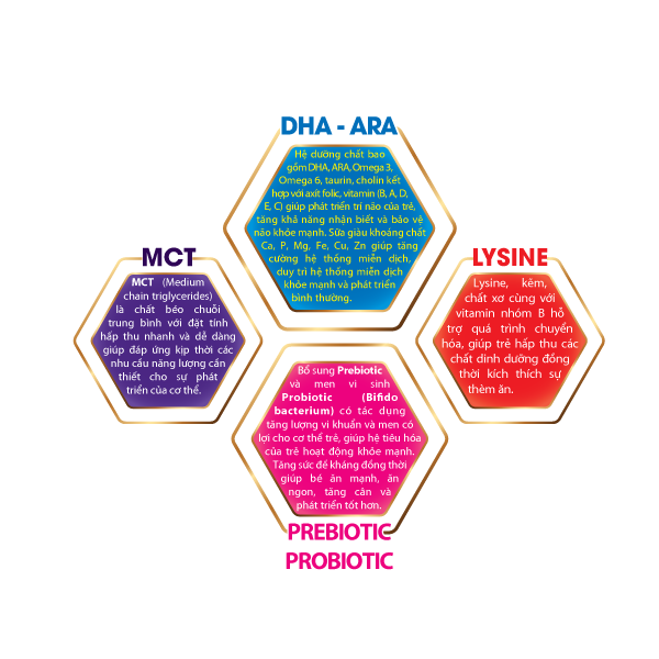 Thay thế bữa ăn phụ hoặc bổ sung cho chế độ ăn hàng ngày thiếu vi chất dinh dưỡng Giúp phát triển trí não và thị giác Giúp phát triển chiều cao Tăng cường sức