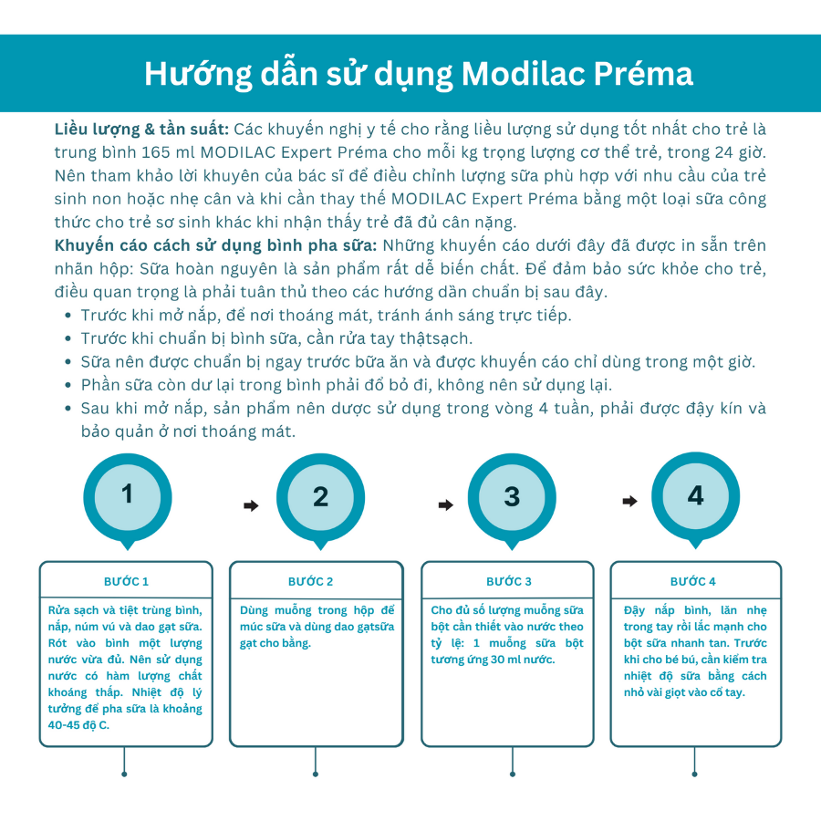 • Modilac Expert Préma được nghiên cứu dựa trên công thức đặc biệt dành riêng cho trẻ sinh non và nhẹ cân.