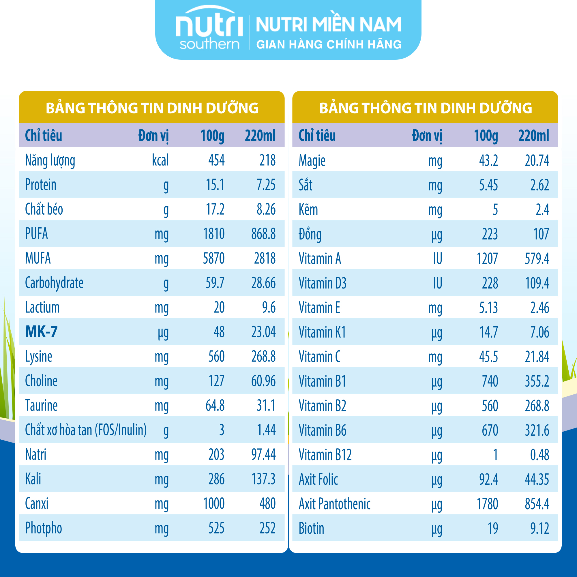 Công dụng TỐT CHO CƠ - XƯƠNG: Giàu đạm quý Arginine & BCAA giúp tưng cường hệ cơ. Giàu Canxi, vitamin D3 cùng Magie, đặc biệt tỷ lệ Canxi/Phospho đạt chuẩn khuyến nghị Quốc gia