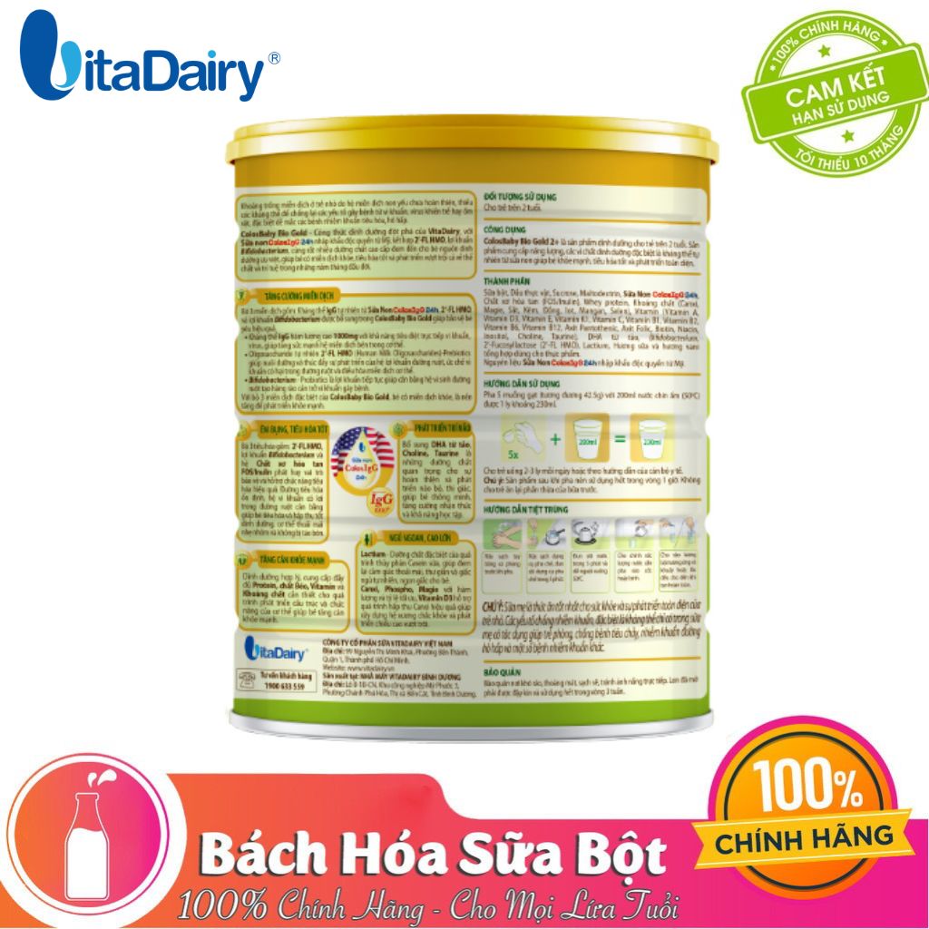 ColosBaby Bio Gold - Công thức dinh dưỡng đột phá mới của VitaDairy, với sữa non ColosIgG 24h nhập khẩu độc quyền từ Mỹ, kết hợp 2’FL HMO, lợi khuẩn Bifidobacterium, cùng rất nhiều dưỡng