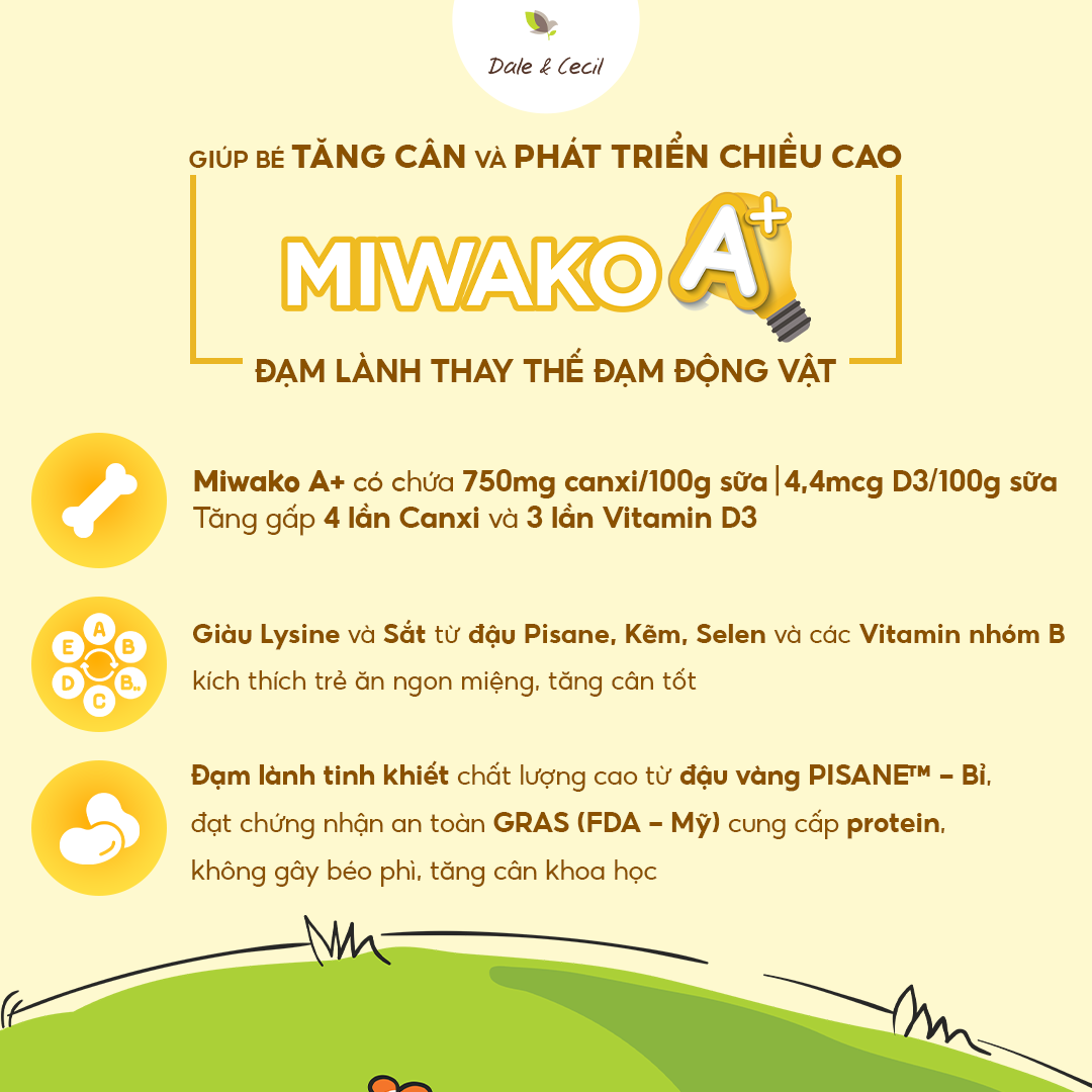 Sữa Công Thức Thực Vật Hữu Cơ Miwako A + là một công thức độc đáo có nguồn gốc thực vật, được bổ sung nhiều vitamin và khoáng chất, phù hợp cho tất cả trẻ nhỏ đang phát triển, đặc biệt là trẻ từ 1 - 6 tuổi.