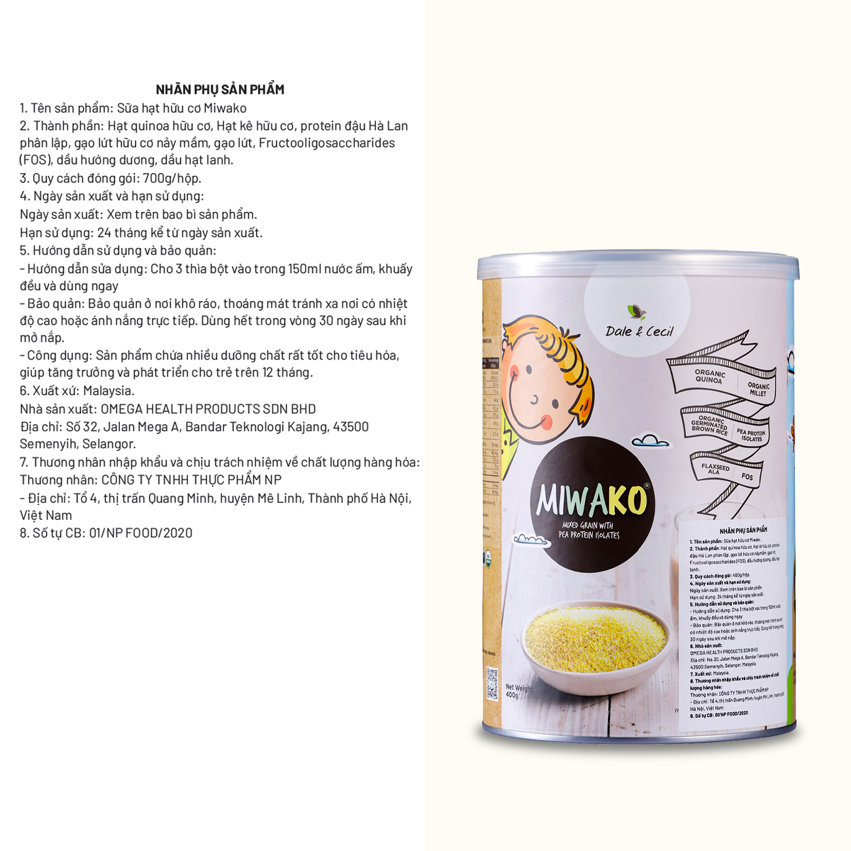 Combo 4 Hộp 400g Sữa Công Thức Hữu Cơ Miwako A+ Vị Vani, Sữa Hạt Cho Bé Phát Triển Trí Não Chiều Cao THÔNG TIN SẢN PHẨM SỮA HẠT MIWAKO A+, SỮA HỮU CƠ CHO