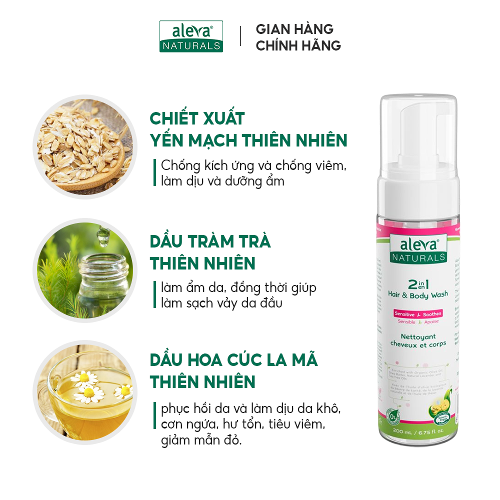 ✨Sữa tắm gội dưỡng ẩm toàn thân cho bé Aleva Naturals (chai 200ml/50ml)