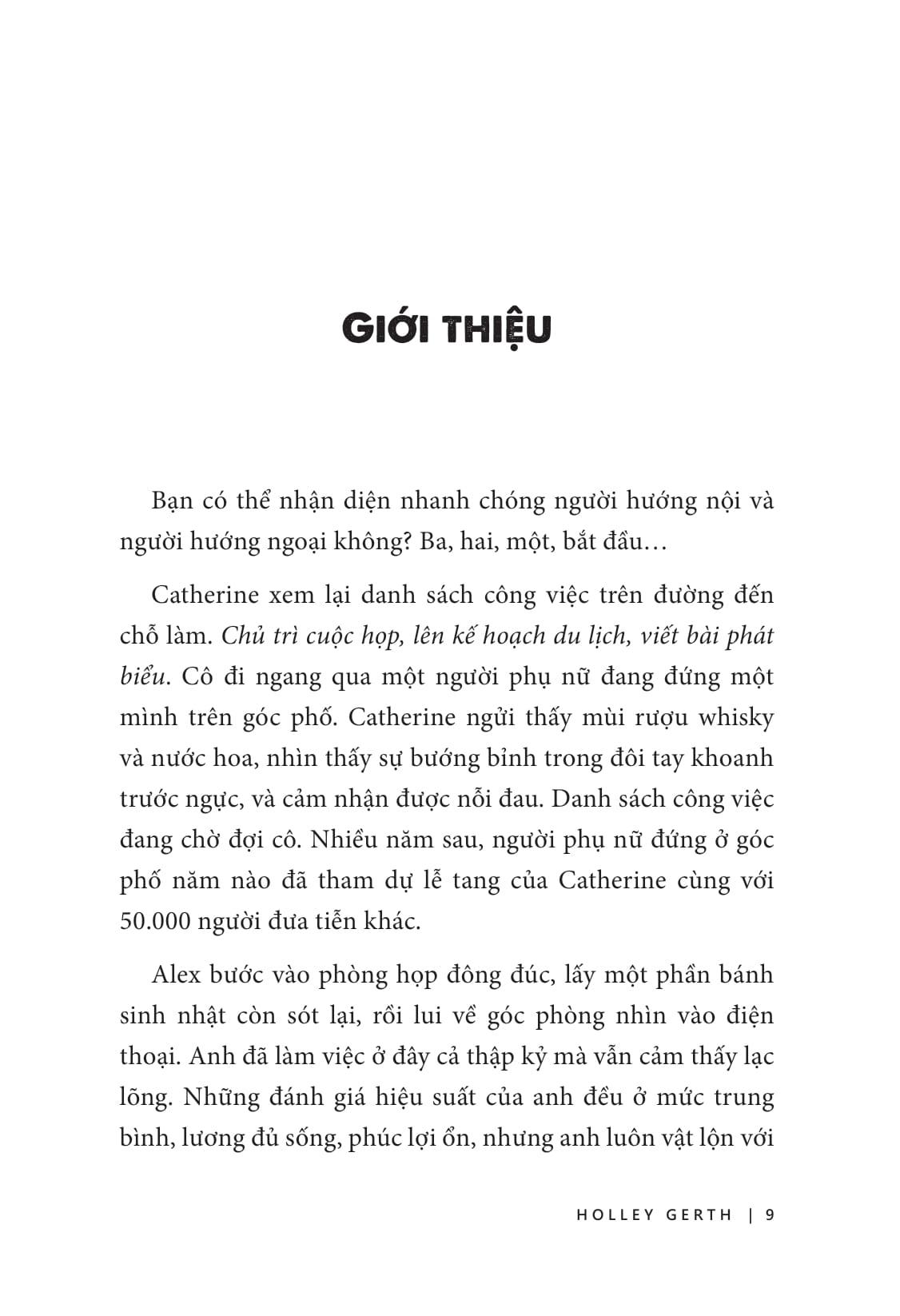 Trong cuốn sách Sức mạnh của người hướng nội – Lý do thế giới cần BẠN là CHÍNH BẠN, Holley Gerth đi sâu vào khoa học não bộ đằng sau tính hướng nội để giúp bạn hiểu các khía cạnh tâm lý, quan hệ và tinh thần của việc là một người hướng nội, từ đó cung cấp cái nhìn tổng quan toàn diện về tính hướng nội và khám phá cách người hướng nội có thể khai thác toàn bộ tiềm năng của m.ình.