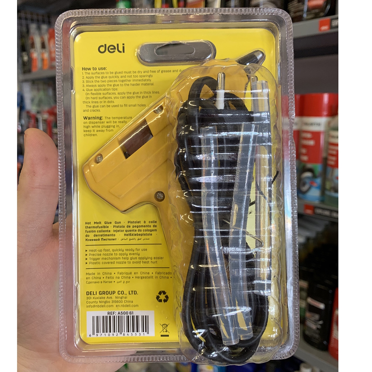 - Súng bắn keo nóng 20w Deli A50061 Giắc cắm chuẩn Châu Âu là dụng cụ phổ biến dùng trong làm đồ handmade hay dùng trong các công việc dán các vật liệu. Với thiết