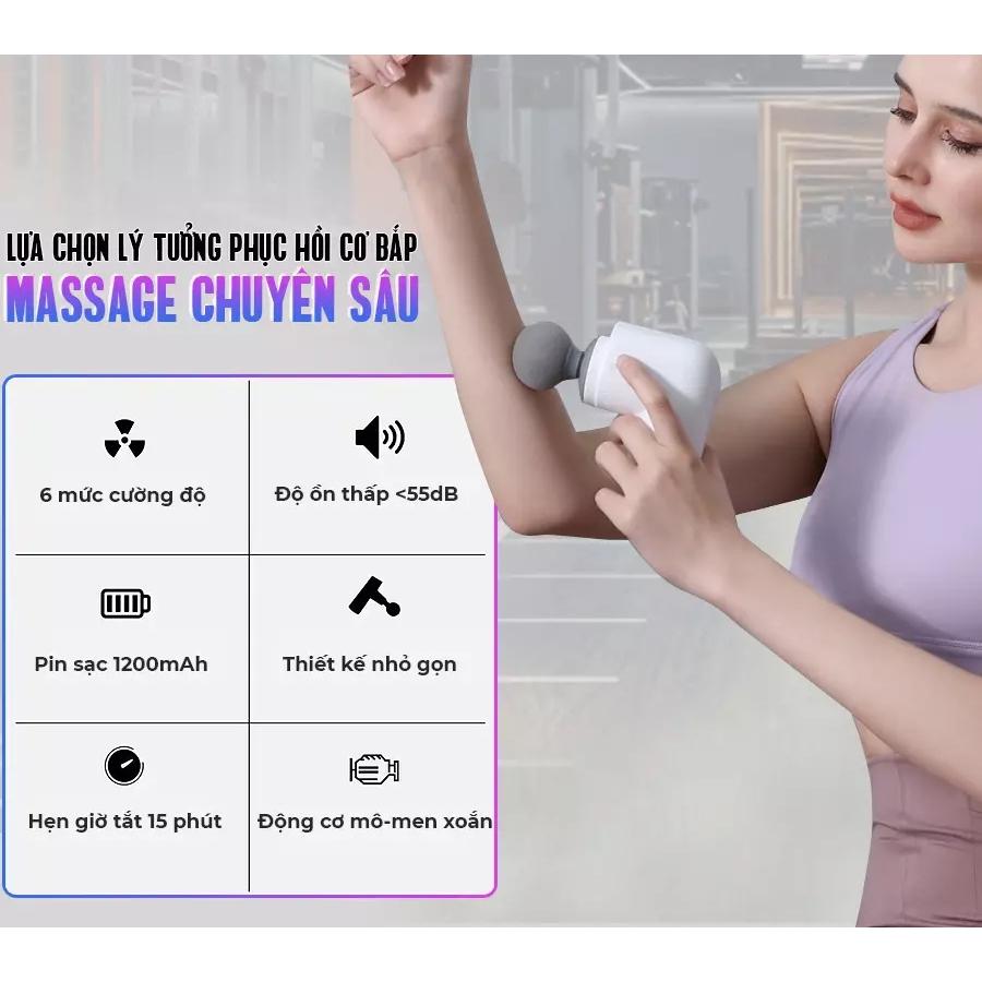 Pin sạc Li-ion dung lượng lớn đến 1200mAh giúp sử dụng lâu dài khoảng 3 hoặc 4 giờ tùy theo cường độ sử dụng. Pin sạc tiện lợi cho phép người dùng mang theo và massage ở mọi nơi, từ phòng tập, sân vận động, văn phòng, nhà ở đến các nơi công cộng.