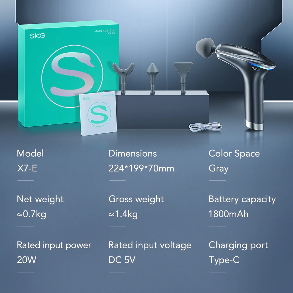 ** Thông số kỹ thuật Súng Massage Đa Điểm SKG X7 có 5 chế độ Mát-xa và Chườm nóng 3 cấp độ Giúp Giảm Stress và Phục Hồi nhanh các nhóm Cơ