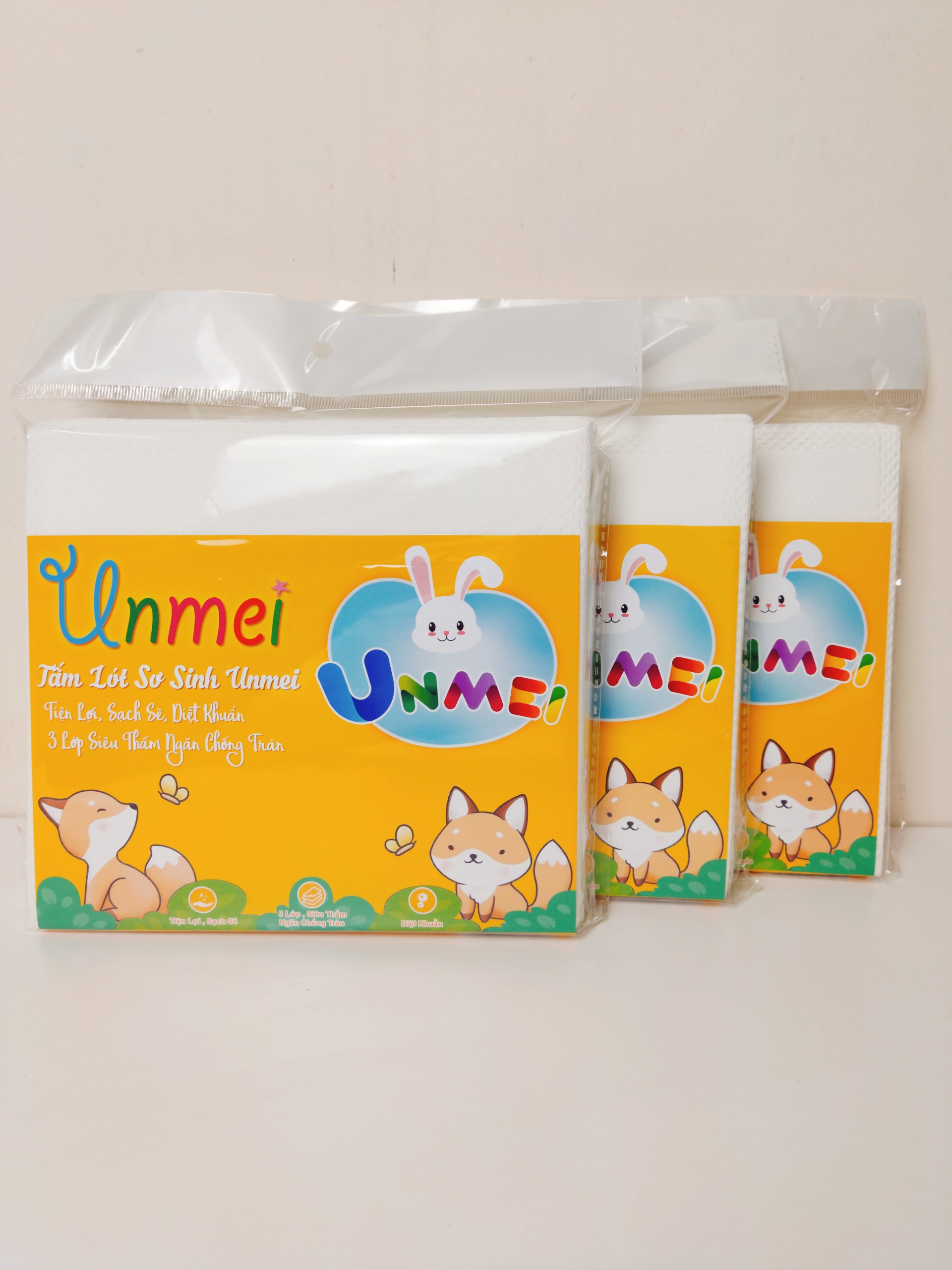 Mô Tả Sản Phẩm Tấm lót xu Unmei - Hàng Việt Nam chất lượng cao với thiết kế 3 lớp siêu thấm, ngăn chống tràn nhẹ nhàng cho làn da non nớt của bé, giúp