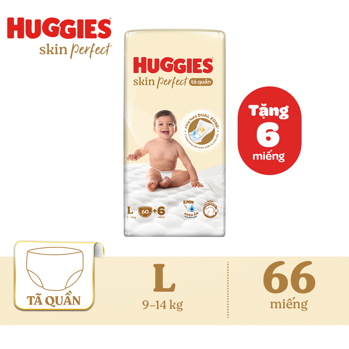 Mua tại TiktokTã quần Huggies Skin Perfect L Super Jumbo 60+6 miếng với 2 vùng thấm giảm kích ứng da Giới thiệu Tã Huggies SkinPerfect Pants sở hữu cải tiến đột phá với công nghệ Dual Zone với 2 vùng siêu thấm riêng biệt, giúp thấm và khoá nước tiểu hiệu quả, hạn chế vi khuẩn phát triển. Đặc điểm nổi bật